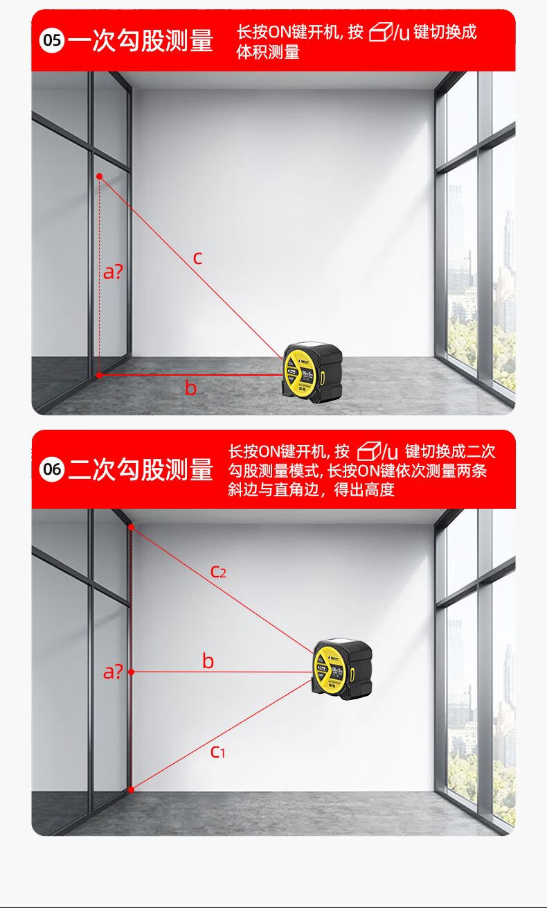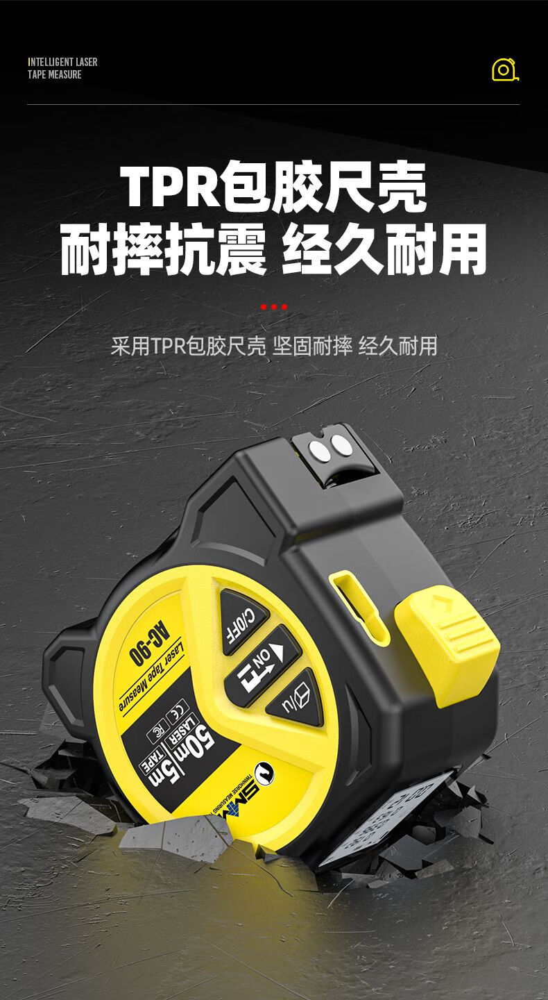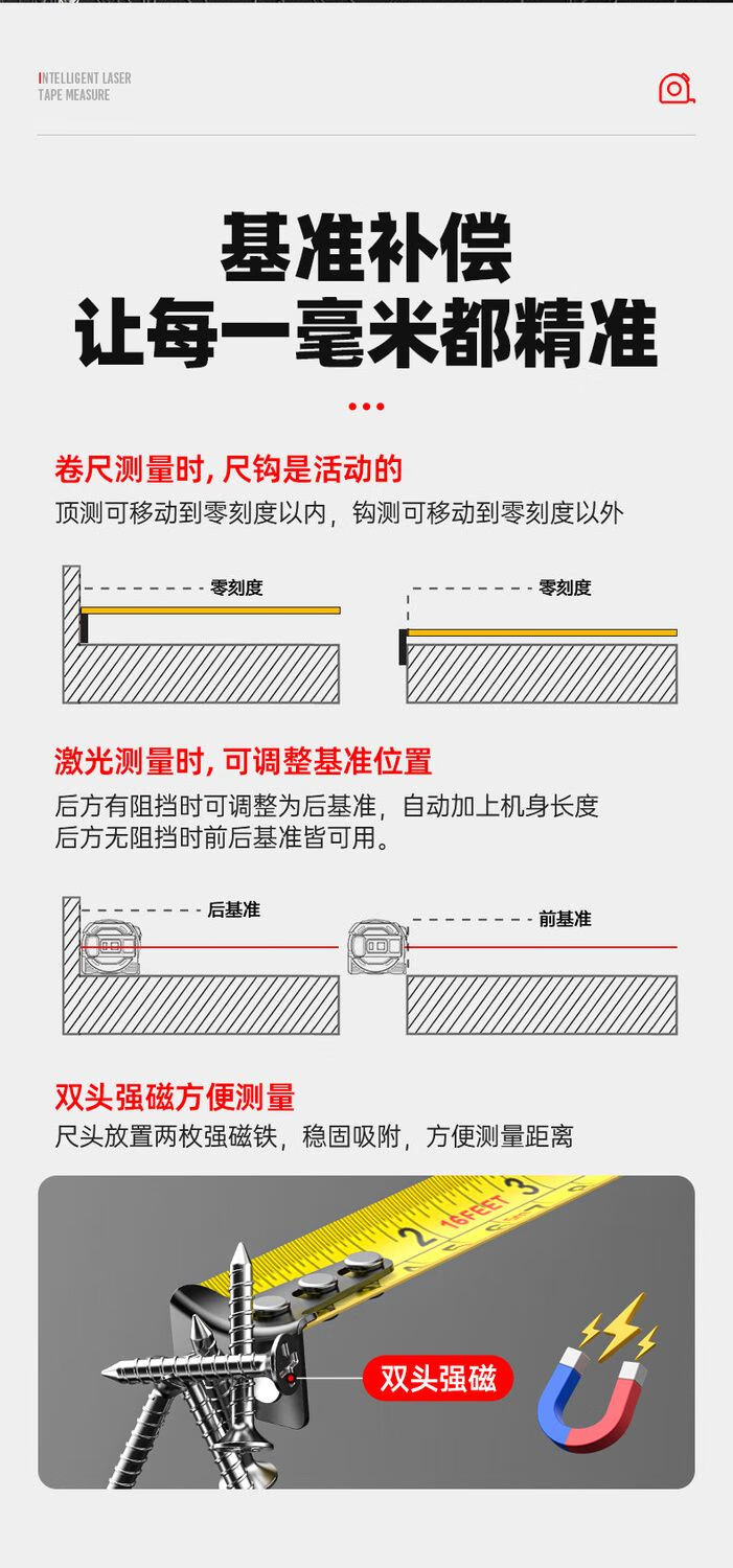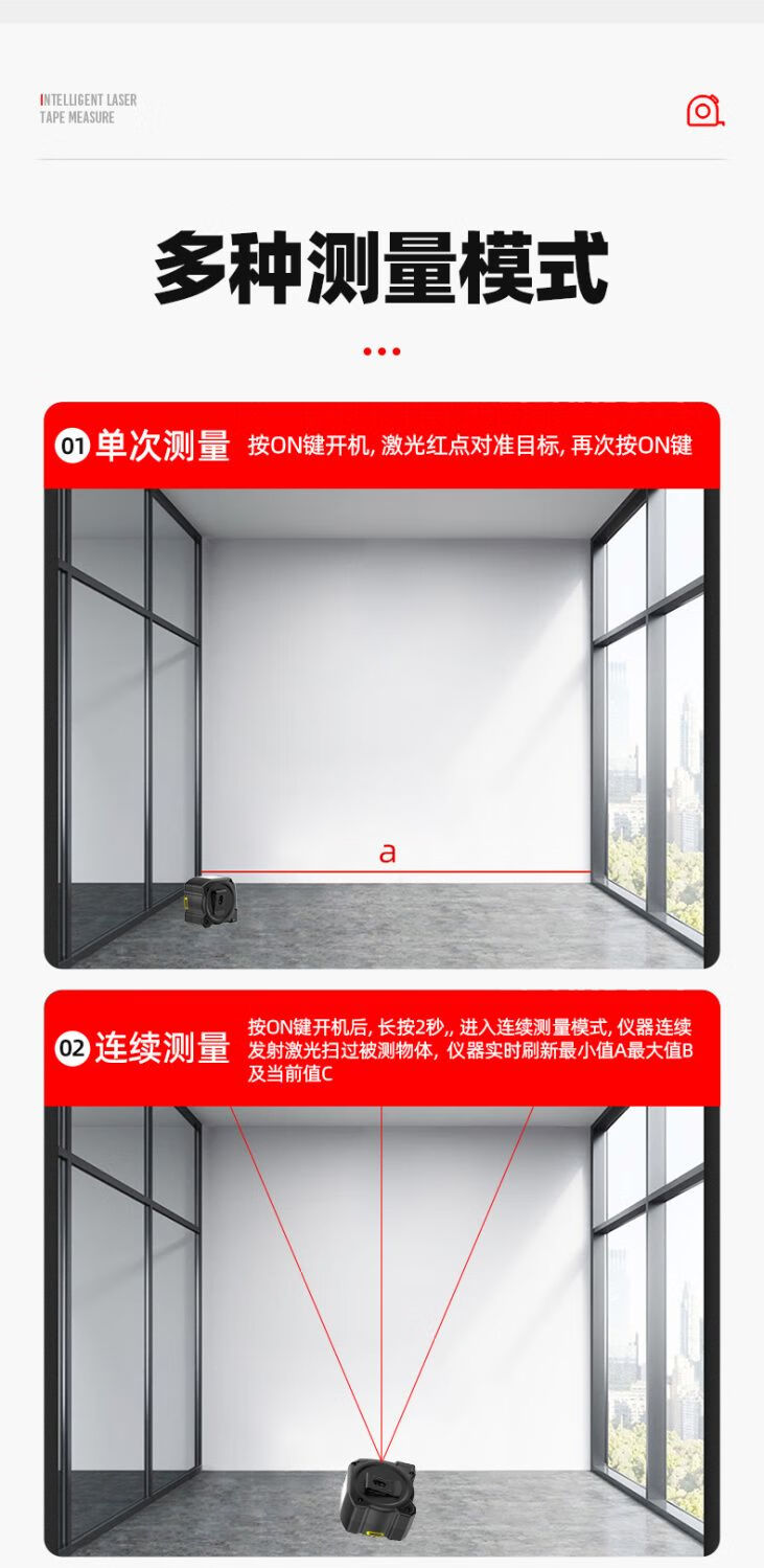 FANCYCHIC dual-horse portable multi-function laser distance meter, metric and inch double tape measure, three-in-one high-precision measuring ruler, compact 50-meter laser distance meter, 50M laser distance measurement + 5M metric and inch tape + multiple measurement modes