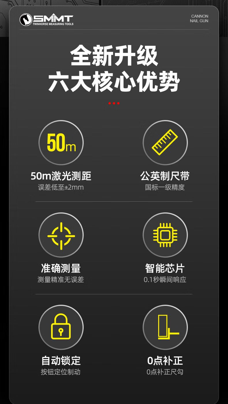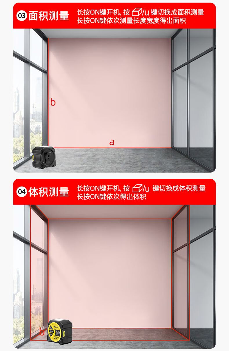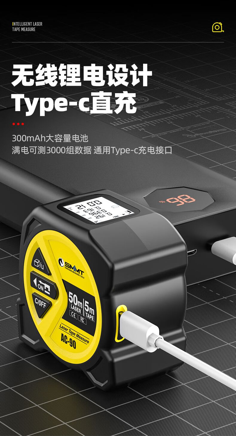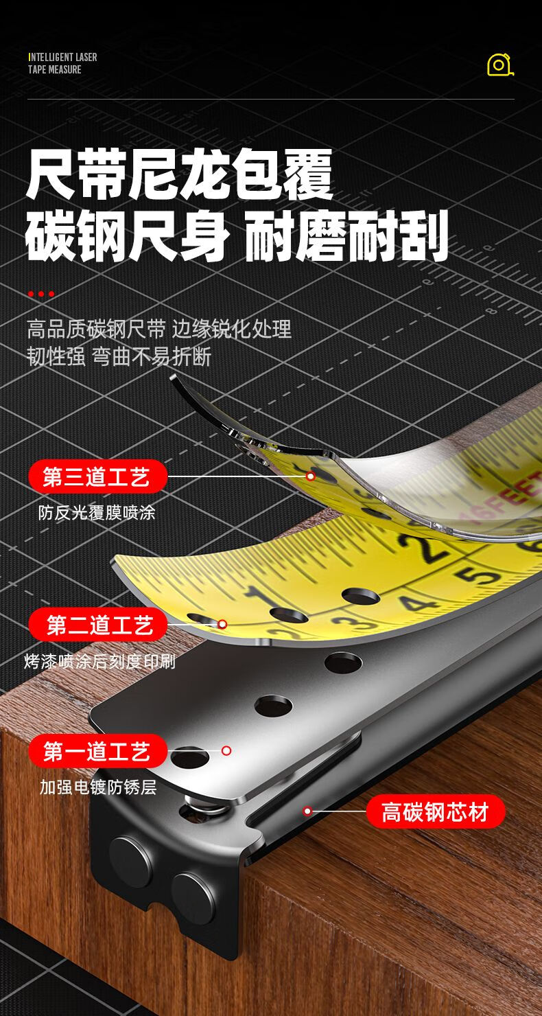 FANCYCHIC dual-horse portable multi-function laser distance meter, metric and inch double tape measure, three-in-one high-precision measuring ruler, compact 50-meter laser distance meter, 50M laser distance measurement + 5M metric and inch tape + multiple measurement modes