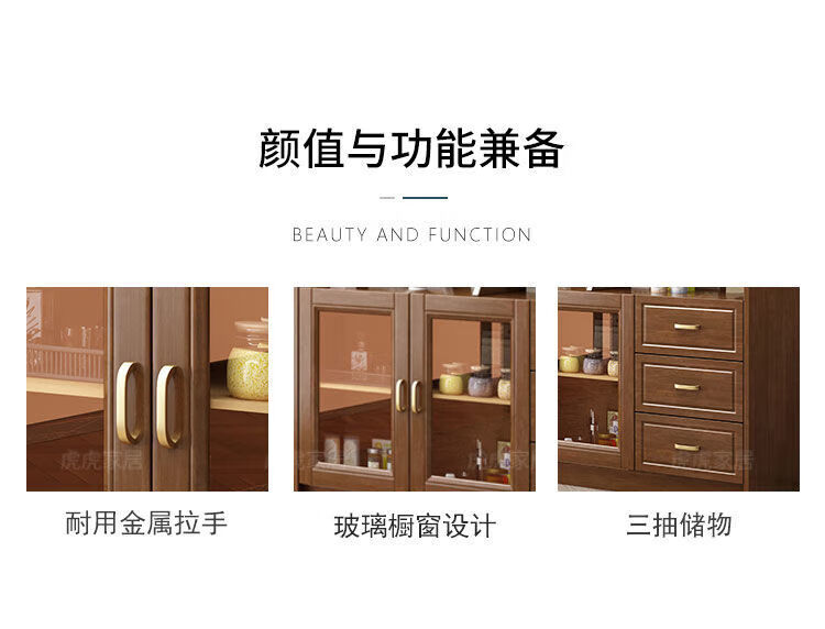 FANCYCHIC solid wood sideboard multi-function wall wine cabinet modern living room dining room office tea cabinet storage rack storage cabinet 8511.3 meters walnut color double door
