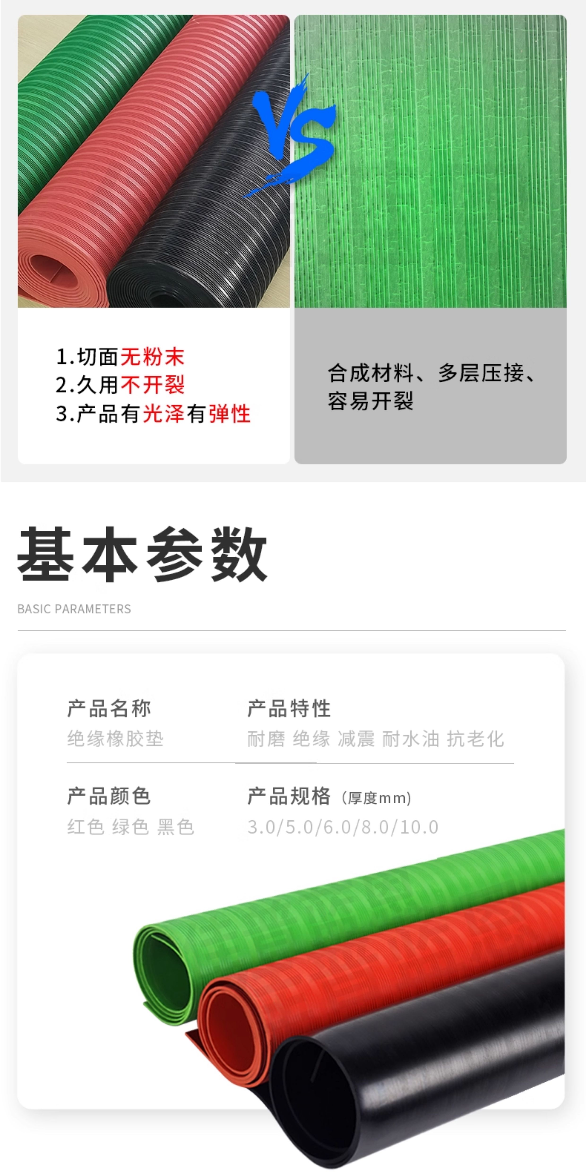 High voltage insulating mat 10kv power distribution room insulating floor mat carpet anti-slip 5mm power distribution room rubber mat rubber sheet red stripe 3mm 1m*1m voltage resistance 6KV