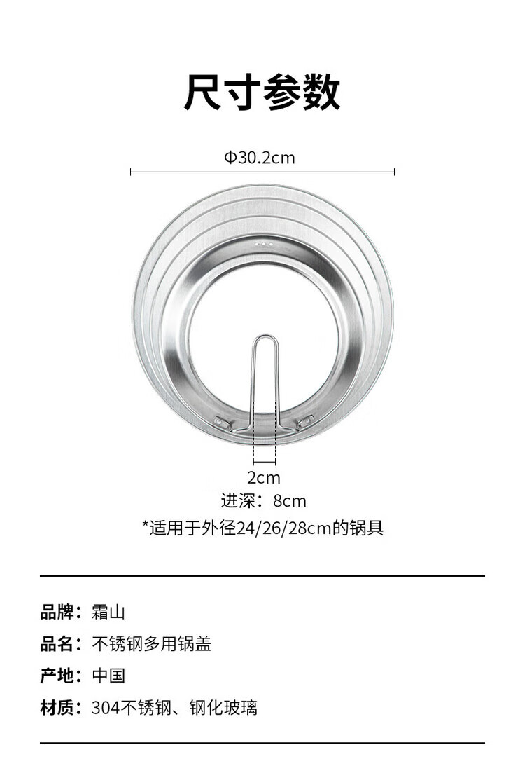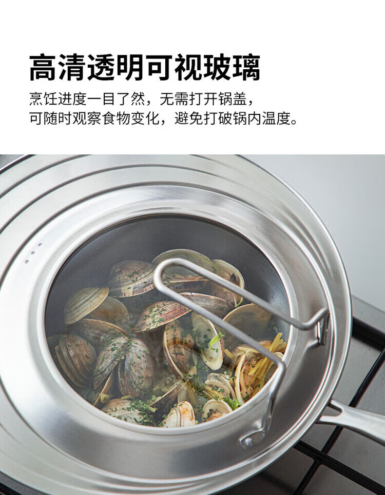 Wild pigeon stainless steel visual pot lid household frying pan wok lid kitchen multi-purpose self-standing transparent glass lid suitable for outer diameter