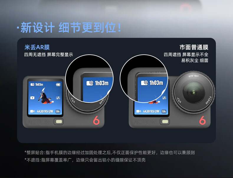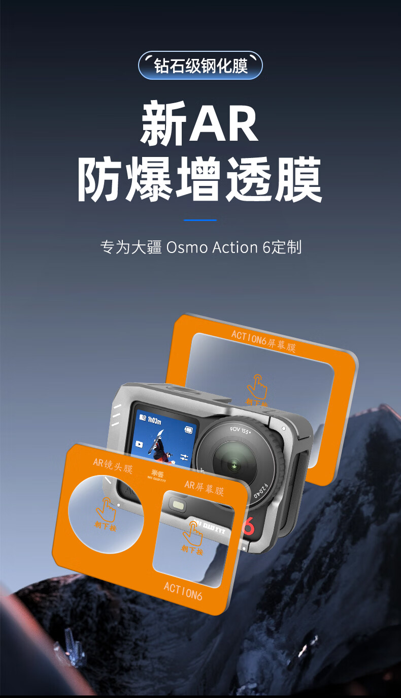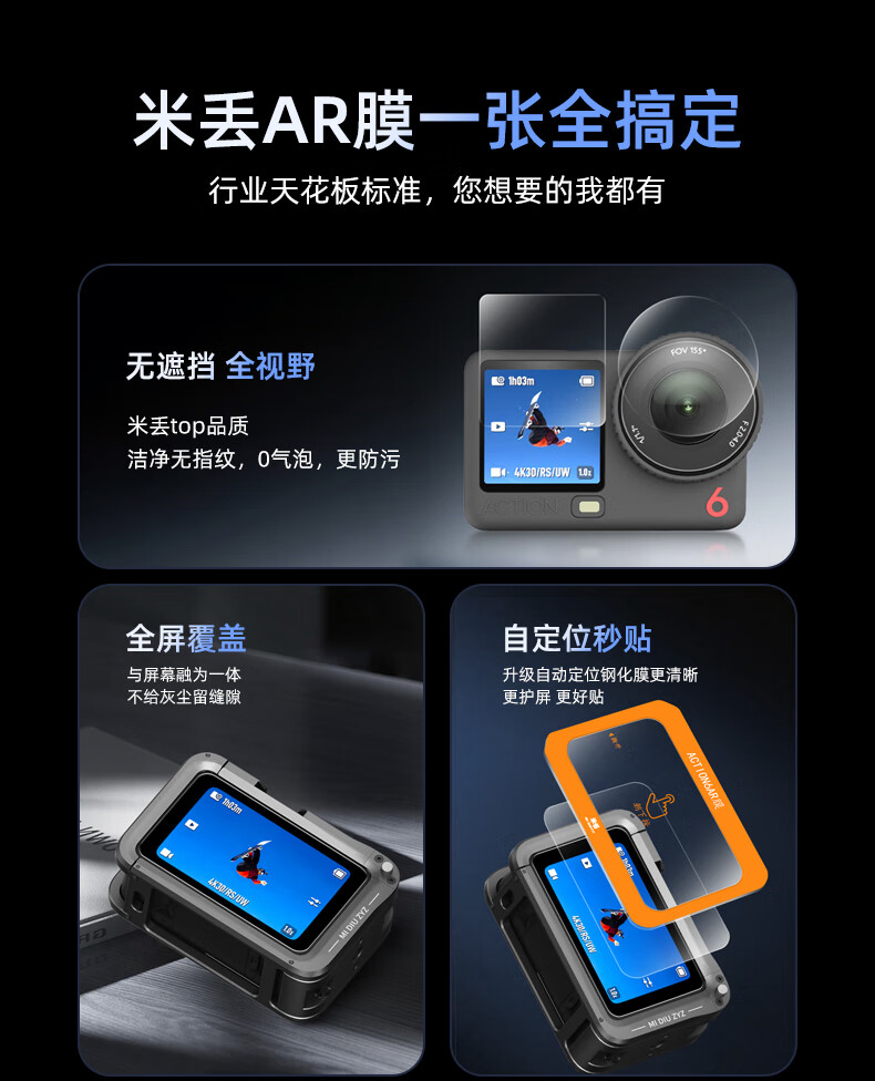 Midiu adapts to DJI action6 second sticker positioning ar tempered film screen action5pro protective film film lens action6 HD film DJI tempered film oa6 accessories suitable for Action5pro AR anti-reflection second sticker tempered film 1 set