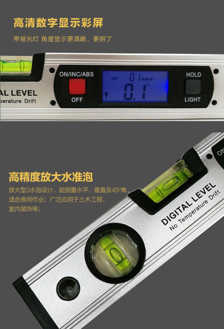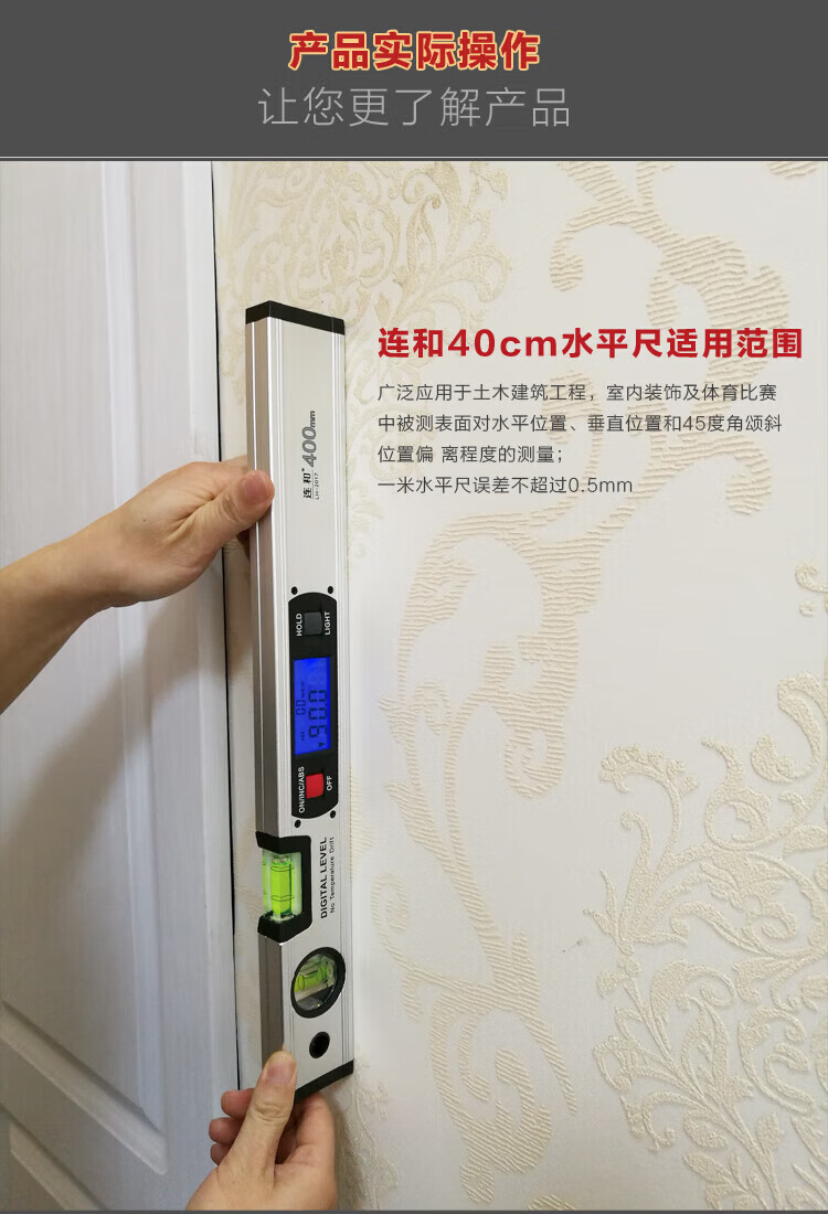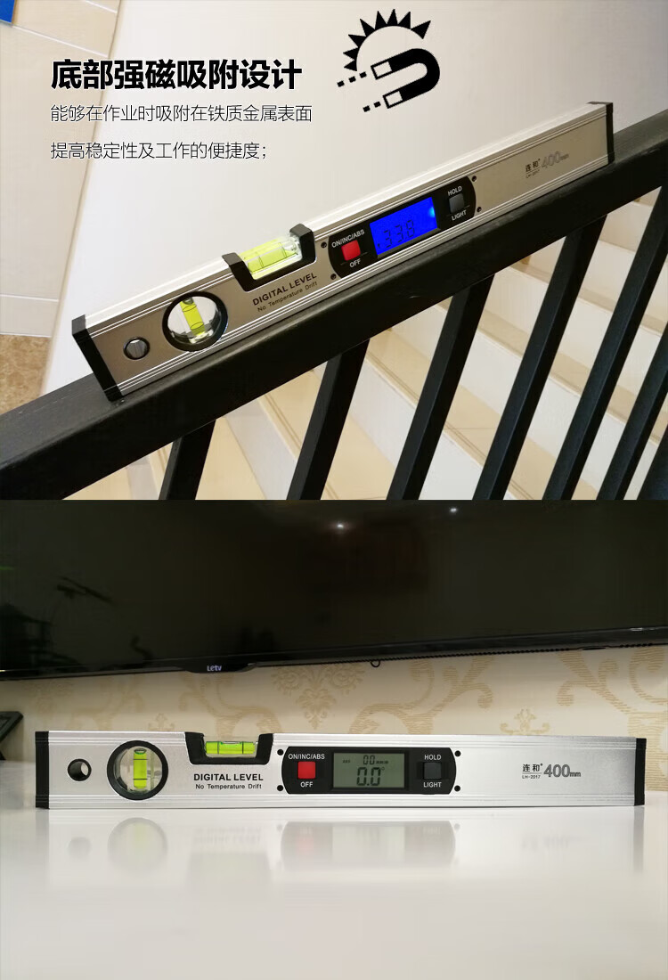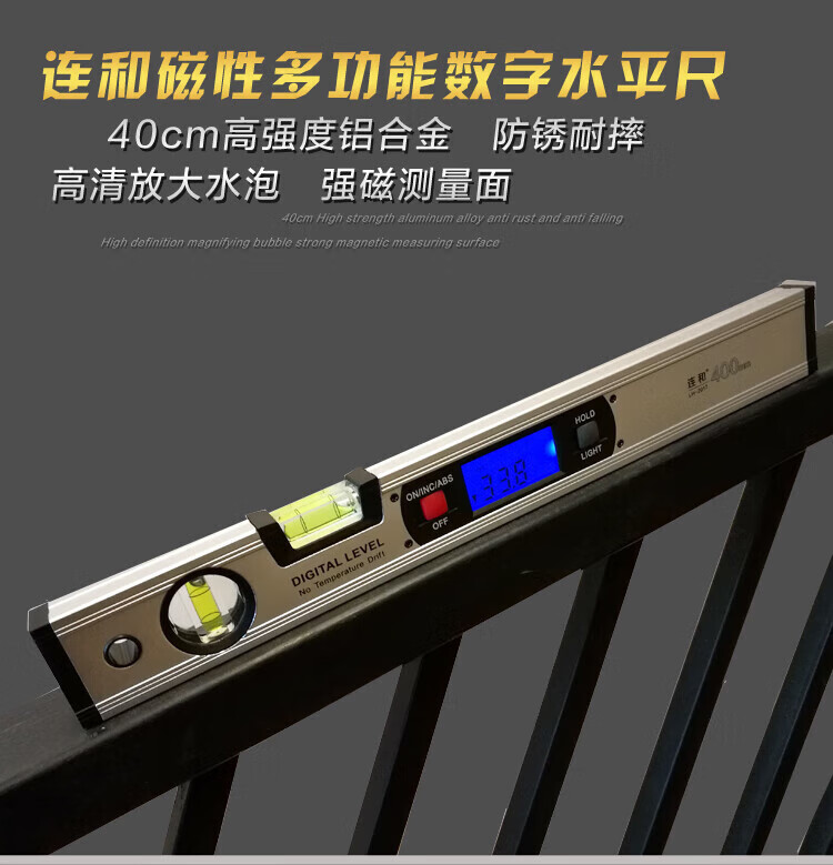 NJ Lianhe magnetic digital display inclinometer slope ruler angle meter digital level slope measurement angle ruler Lianhe 40cm digital level ruler