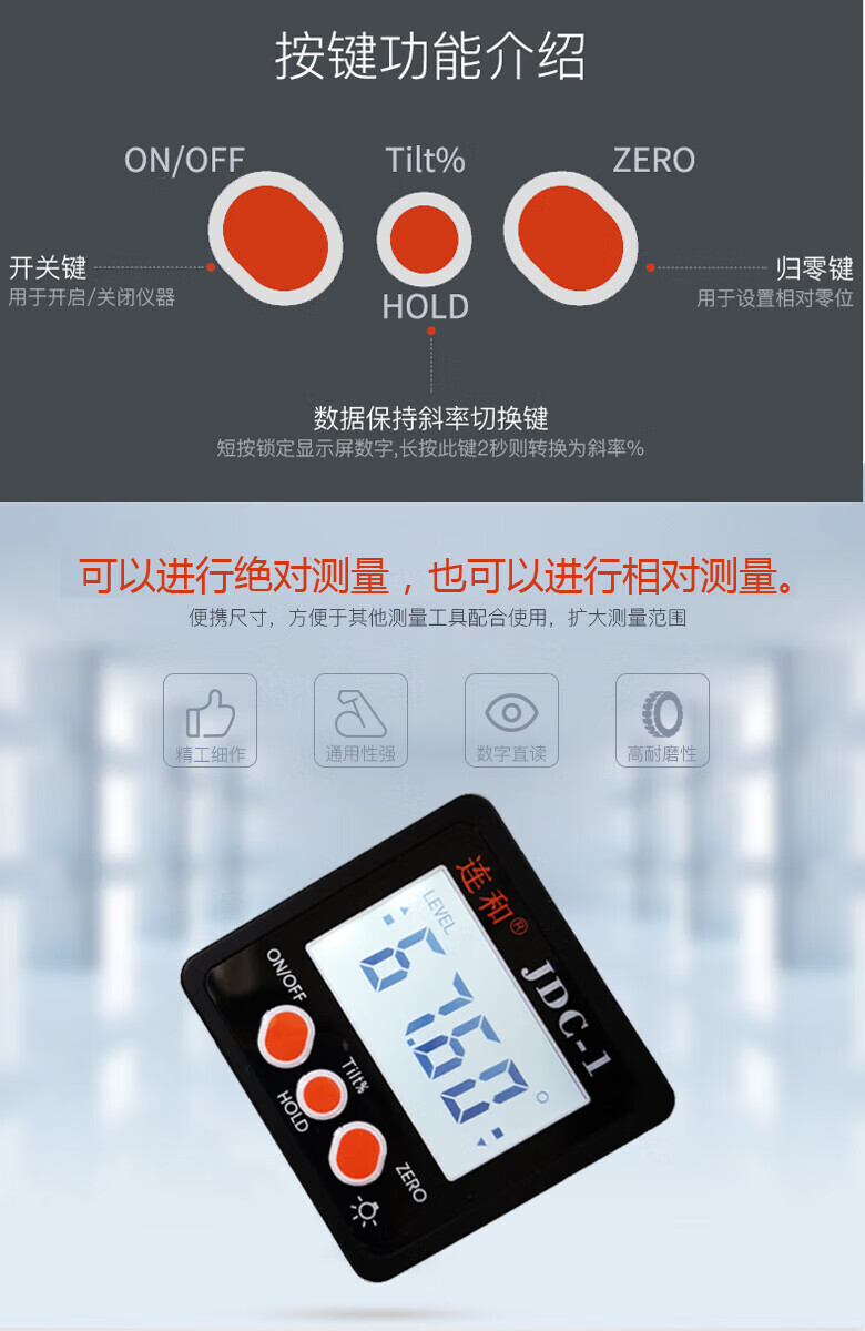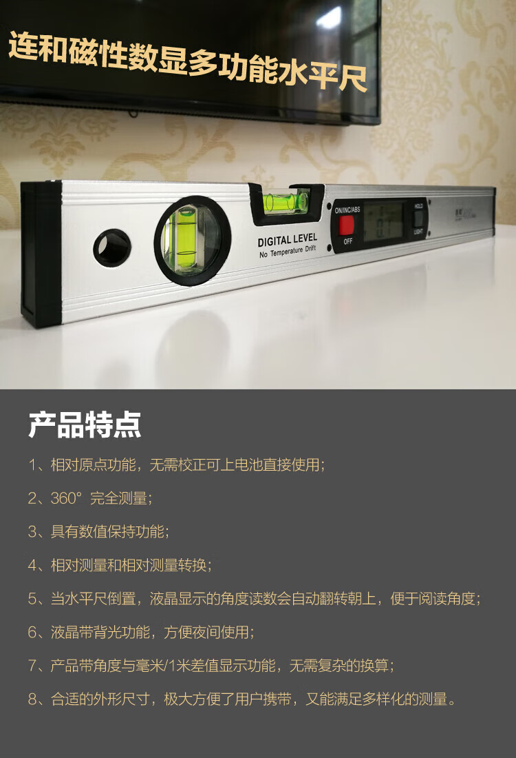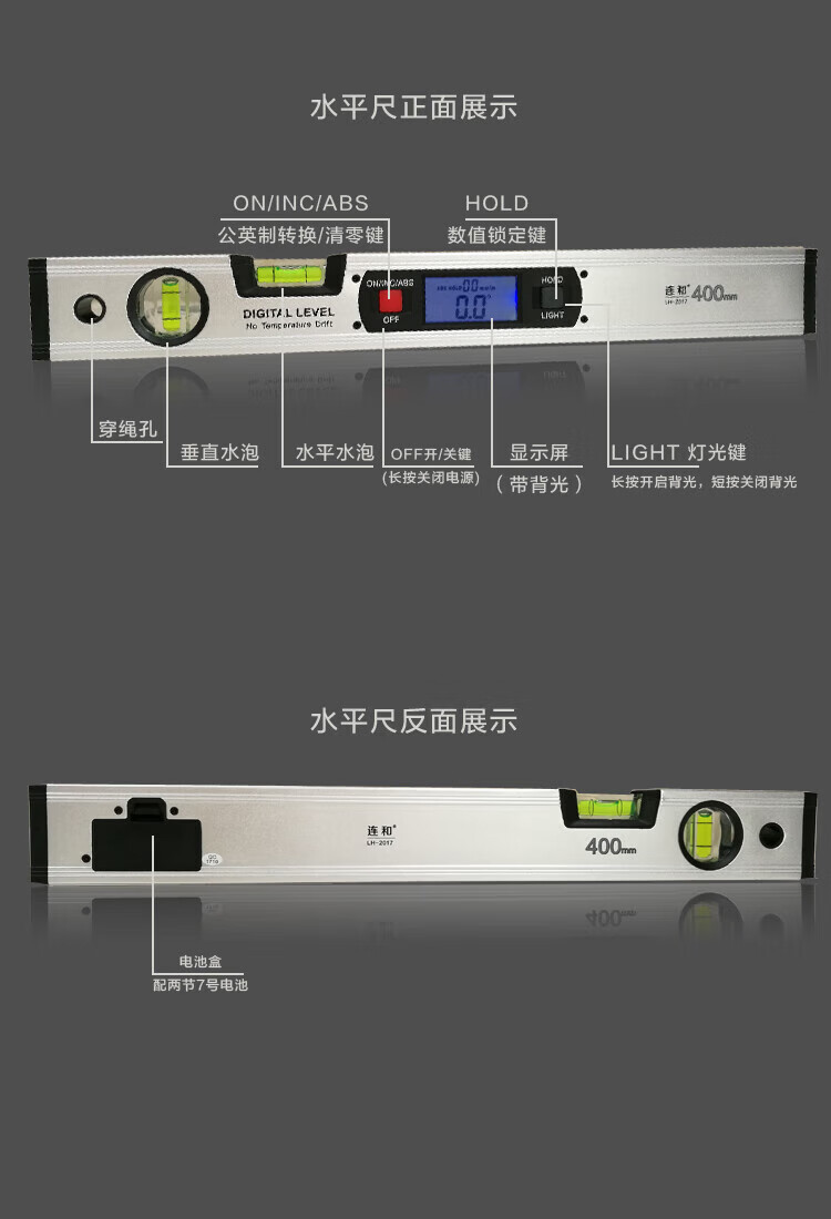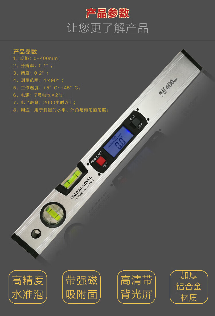 NJ Lianhe magnetic digital display inclinometer slope ruler angle meter digital level slope measurement angle ruler Lianhe 40cm digital level ruler