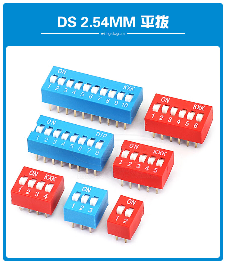 DIP switch toggle side dial 2.54mm flat dial 1.27 patch 2P red 4 blue 5 black 6 8 9 10 bit 1P DS flat dial red