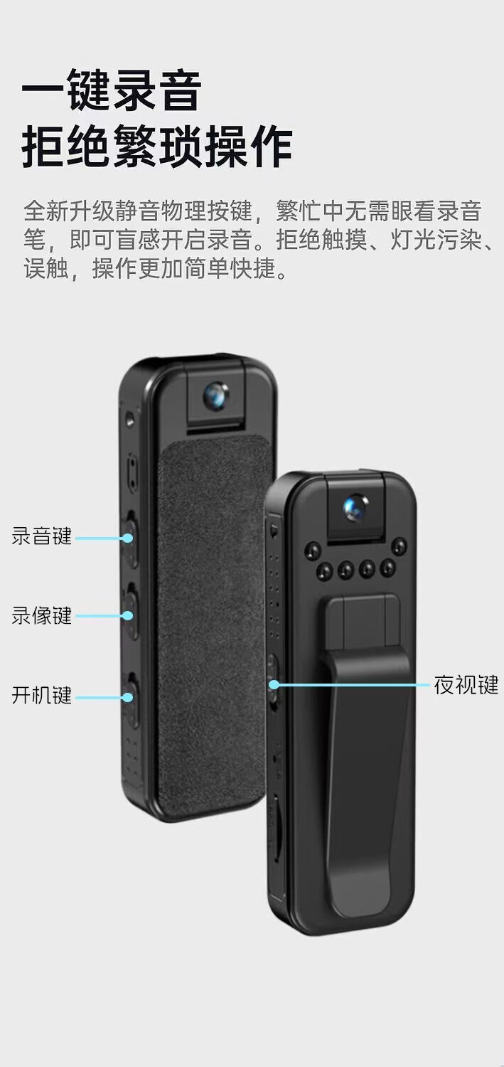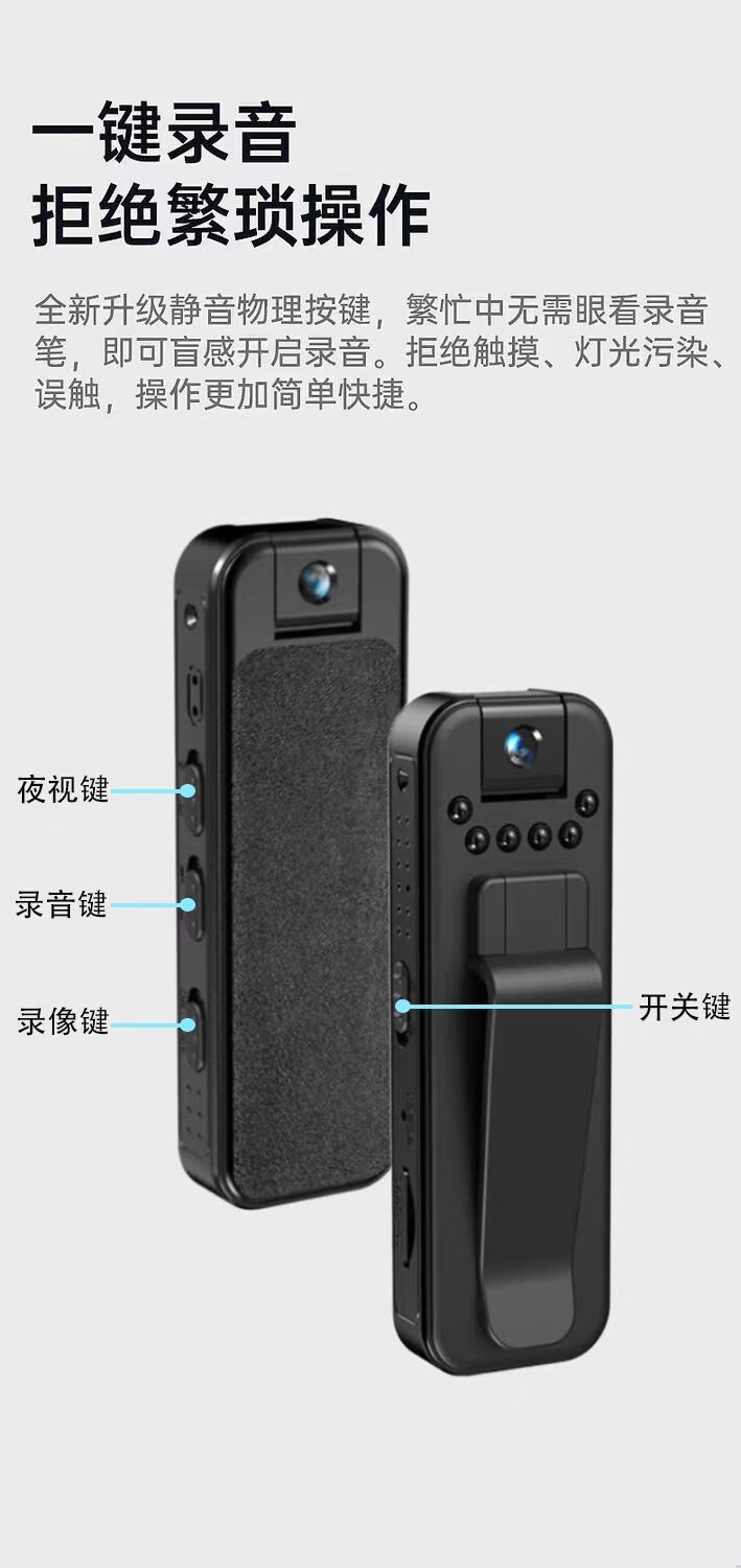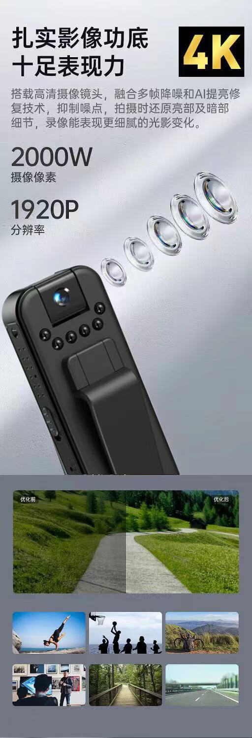 Shimang German 5k high-definition portable recorder DV camera night vision camera sports monitoring outdoor 1920p portable video recorder camera small portable back clip 5K German Seiko + mobile phone interconnection + free adapter 5K ultra-clear AR anti-reflection + card-free version