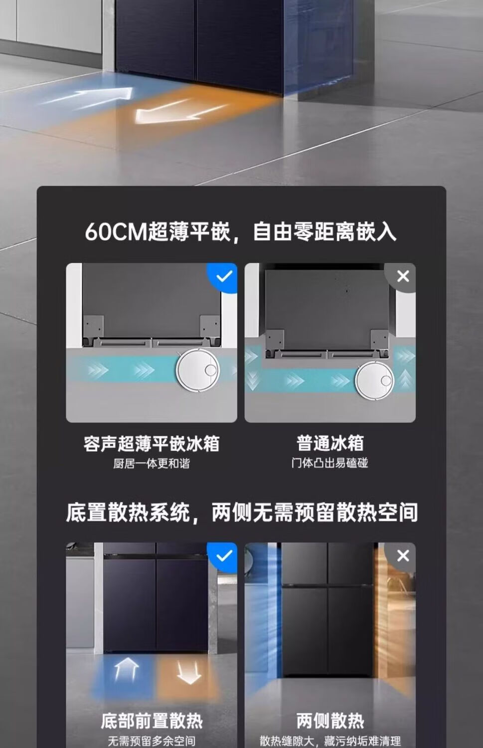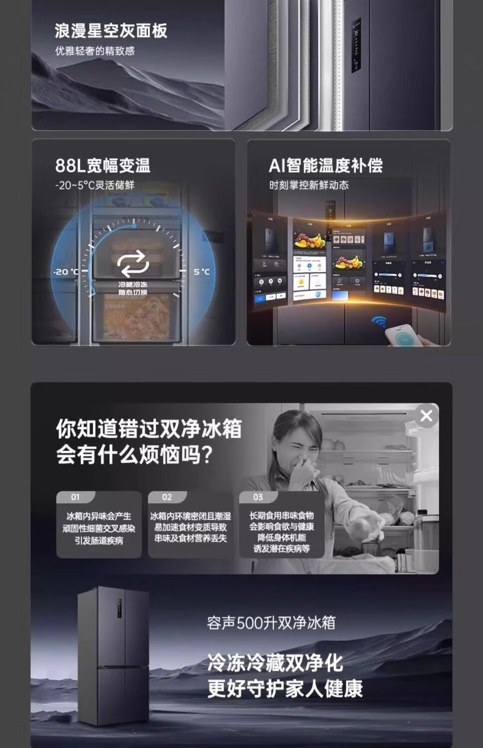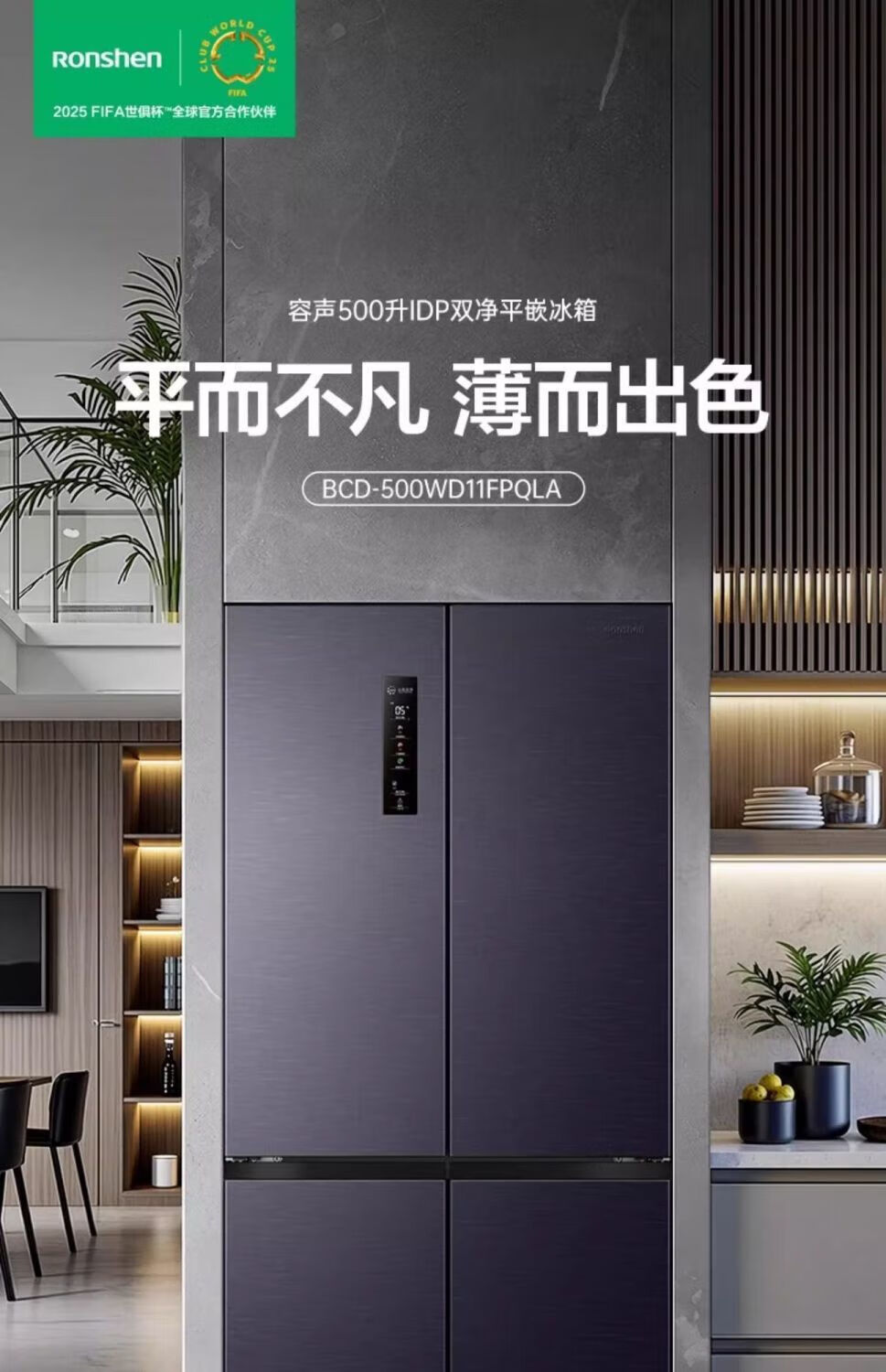 Ronshen's new RS Ronshen 500L flat-mounted IDP double purification double cycle flat-mounted cross four-door refrigerator new Ronshen ipd active sterilization-60cm