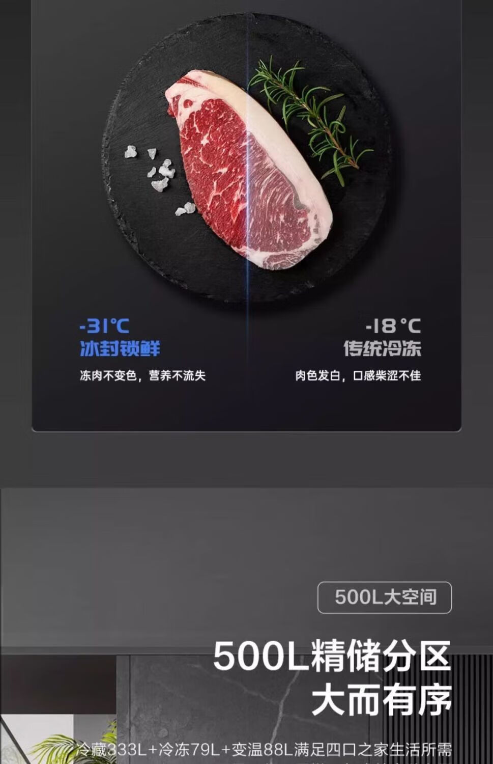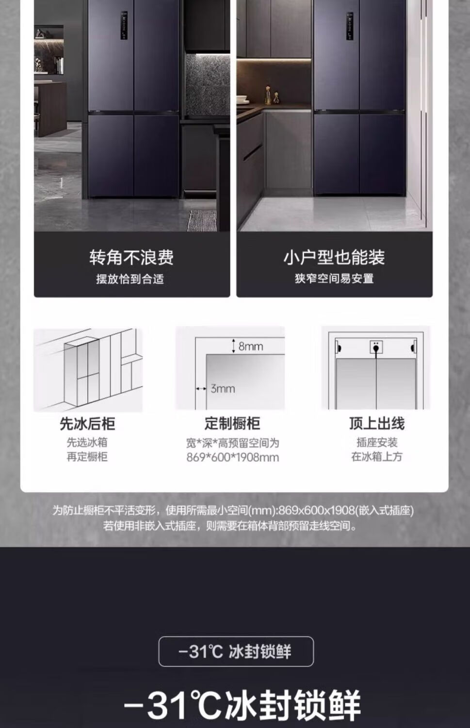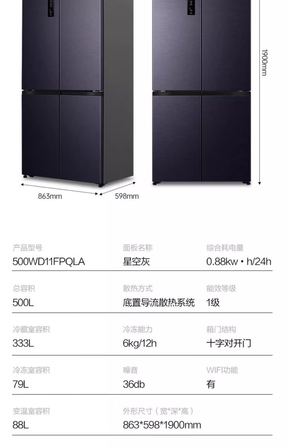 Ronshen's new RS Ronshen 500L flat-mounted IDP double purification double cycle flat-mounted cross four-door refrigerator new Ronshen ipd active sterilization-60cm