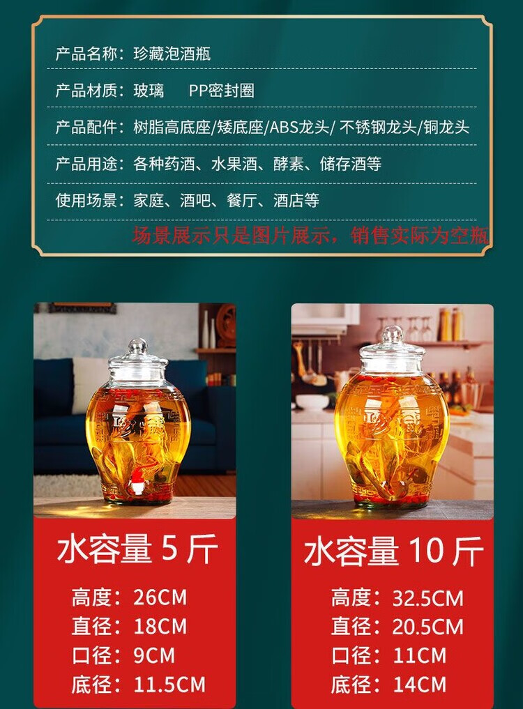 Zixi 5kg 10kg wine glass bottle with faucet, sealed and thickened household wine jar, special wine bottle, collection 5kg water capacity thickened bottle, no faucet, empty bottle