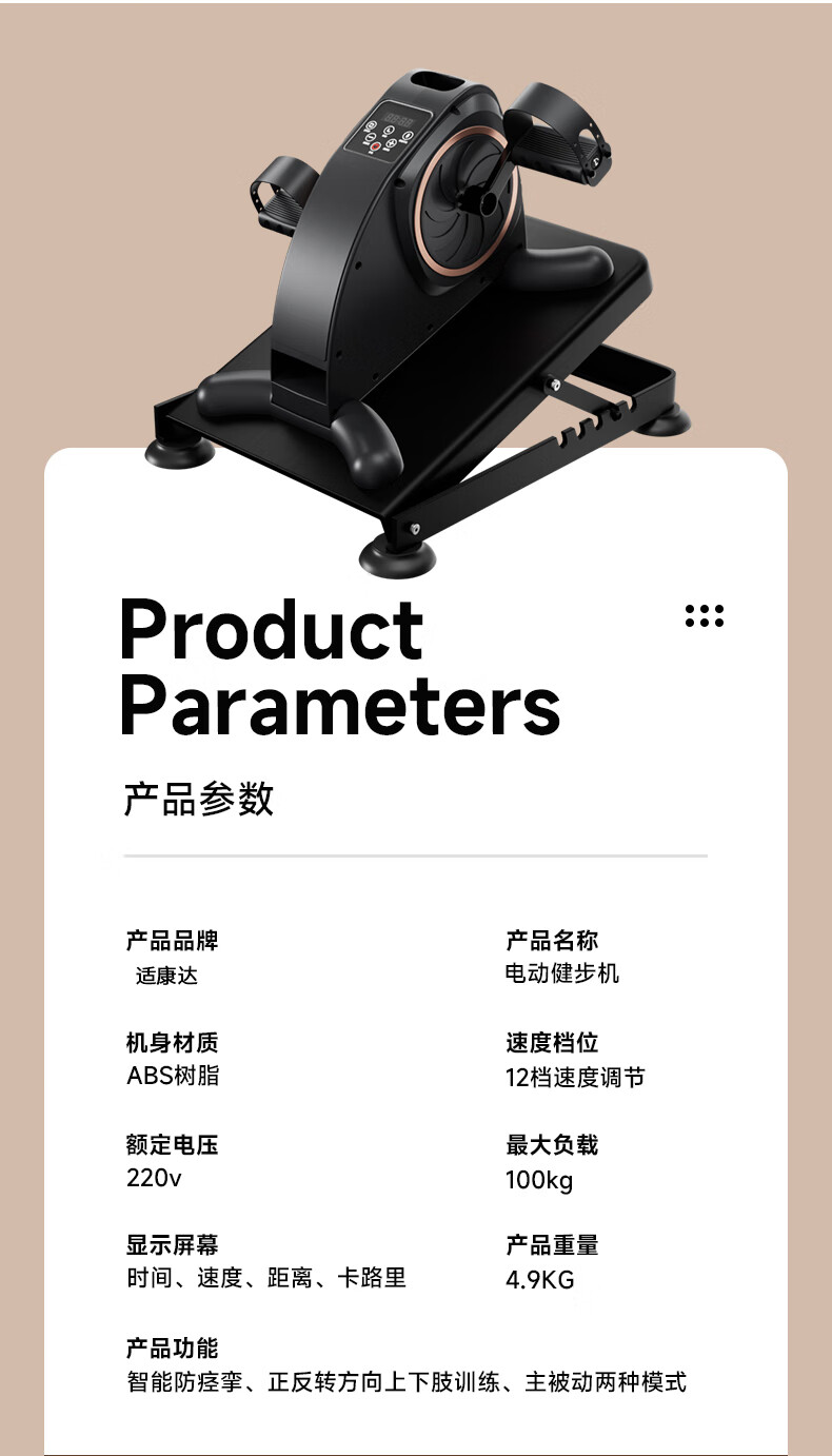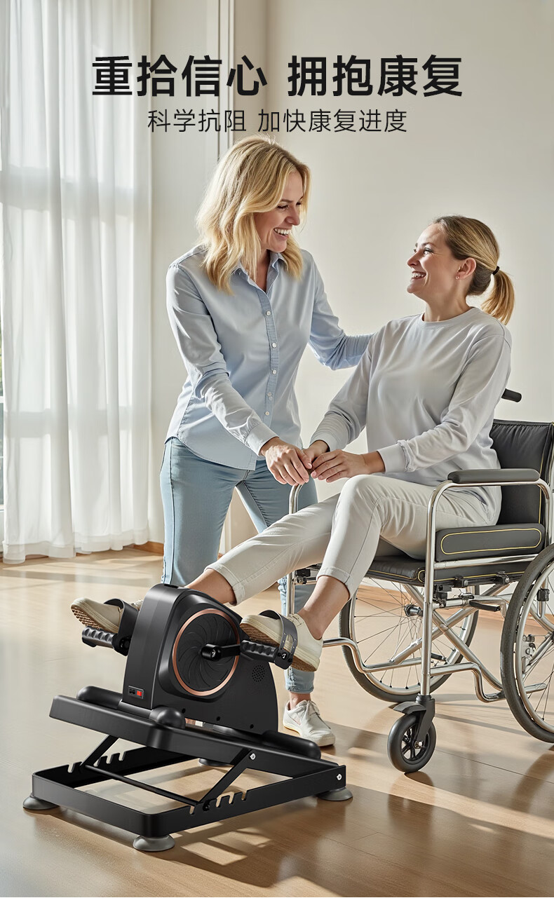 Shikanda Rehabilitation Training Bicycle Elderly Stroke Hemiplegia Leg Trainer Cerebral Infarction Upper and Lower Limbs Electric Rehabilitation Instrument Equipment Professional Low Speed Start Active and Passive Rehabilitation Machine + Gloves + Anti-Slip Mat