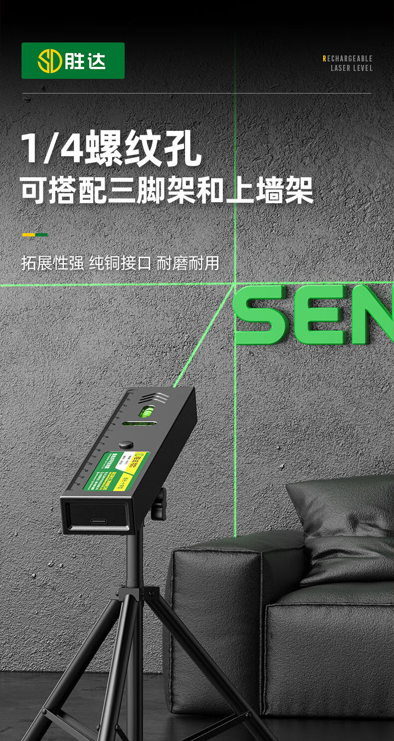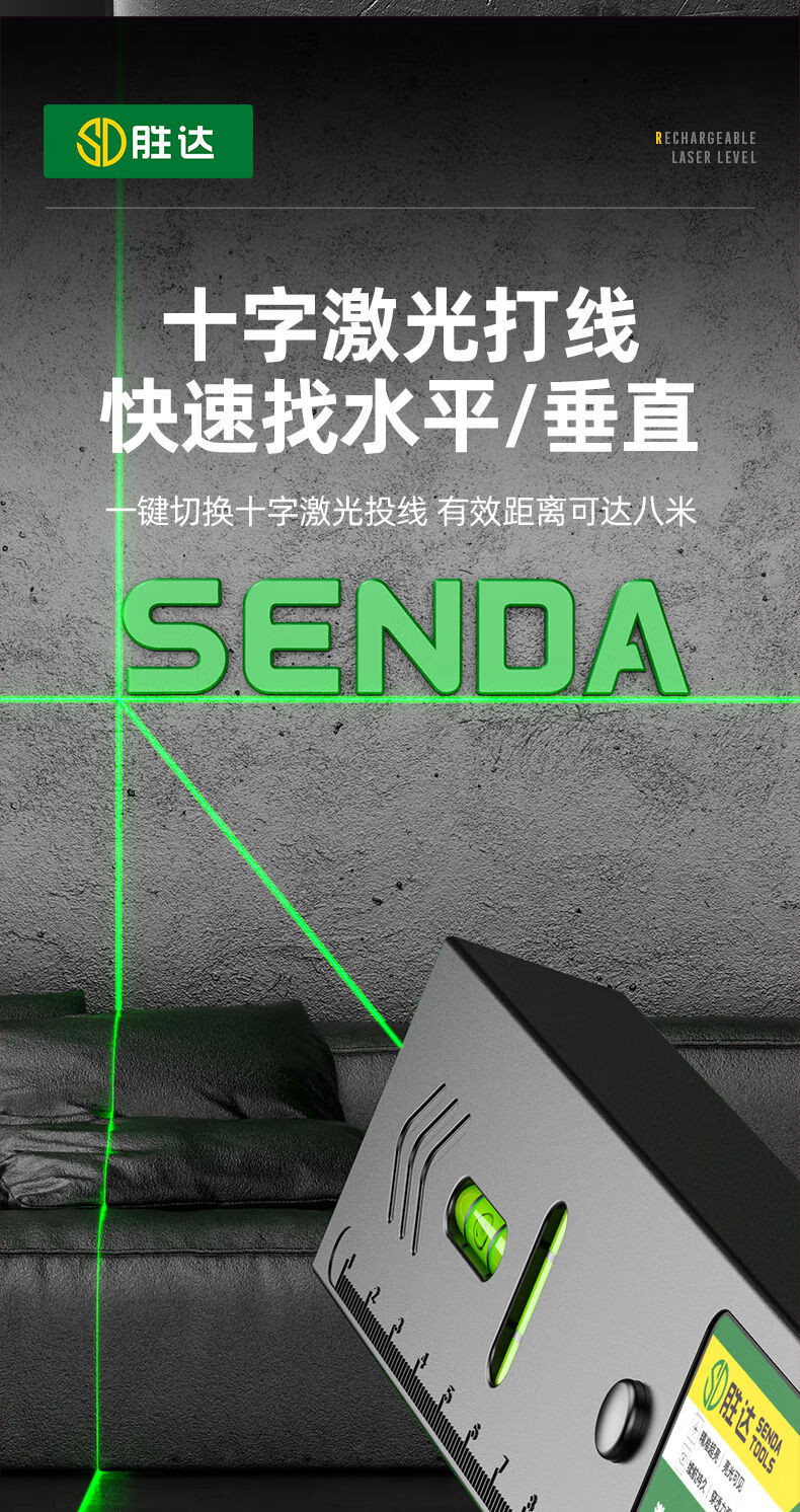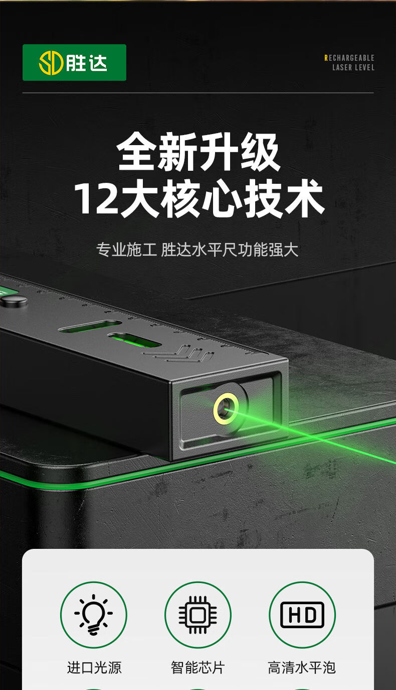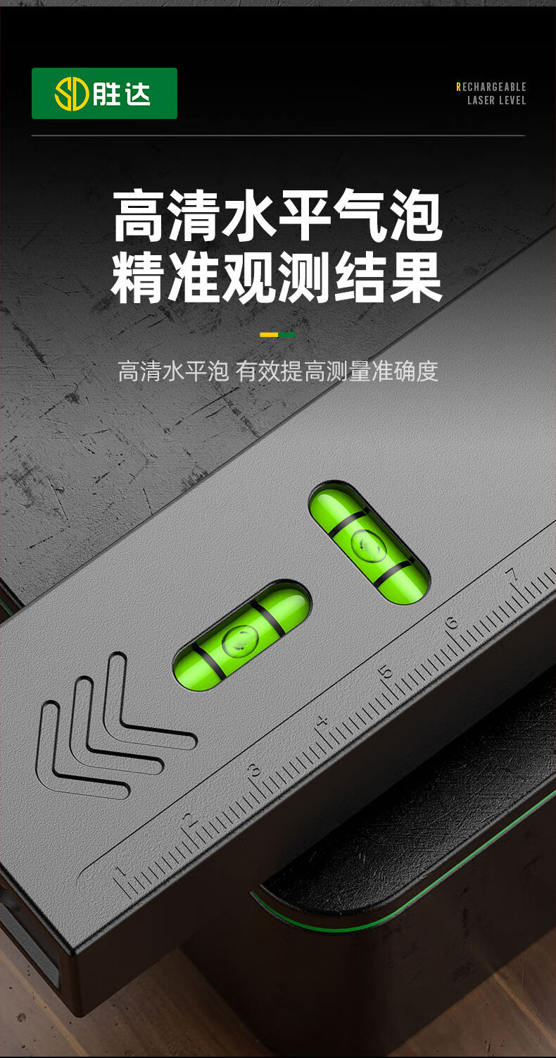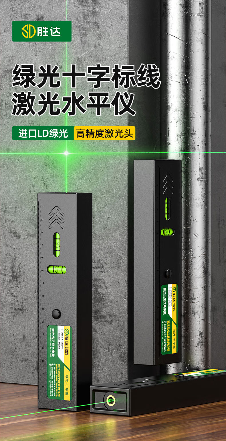 Shengda Laser Level Green Cross Strong Light Thin Line Home Locator Small Measuring Instrument Line Instrument Imported LD Red Light Super Precision Double Bubble-Lithium Direct Charging Laser Cross Level