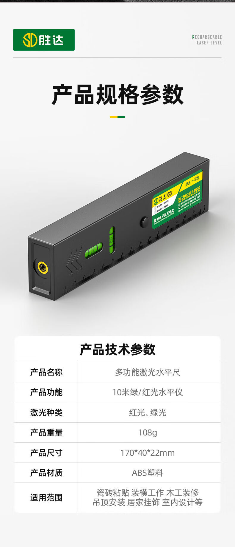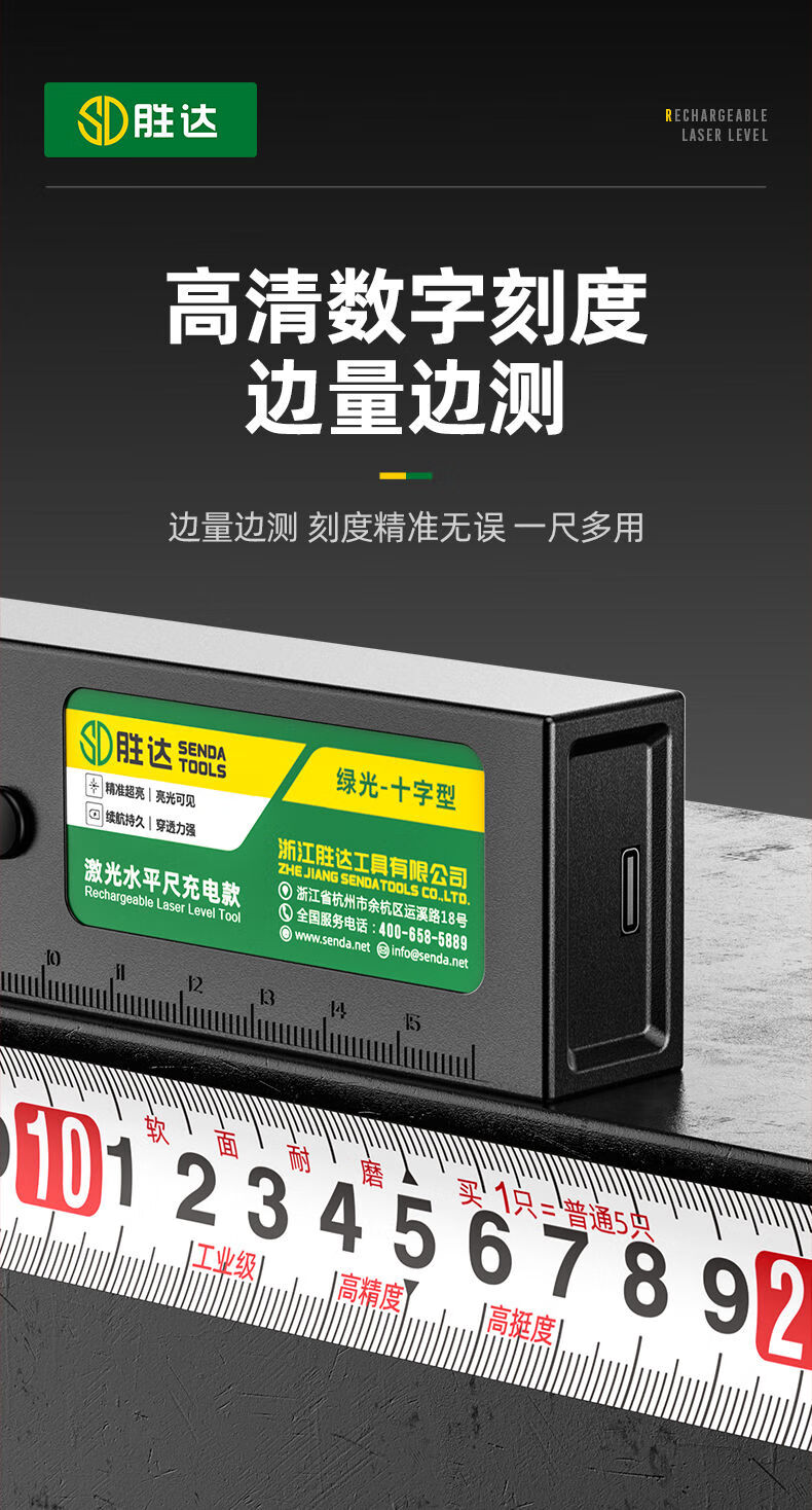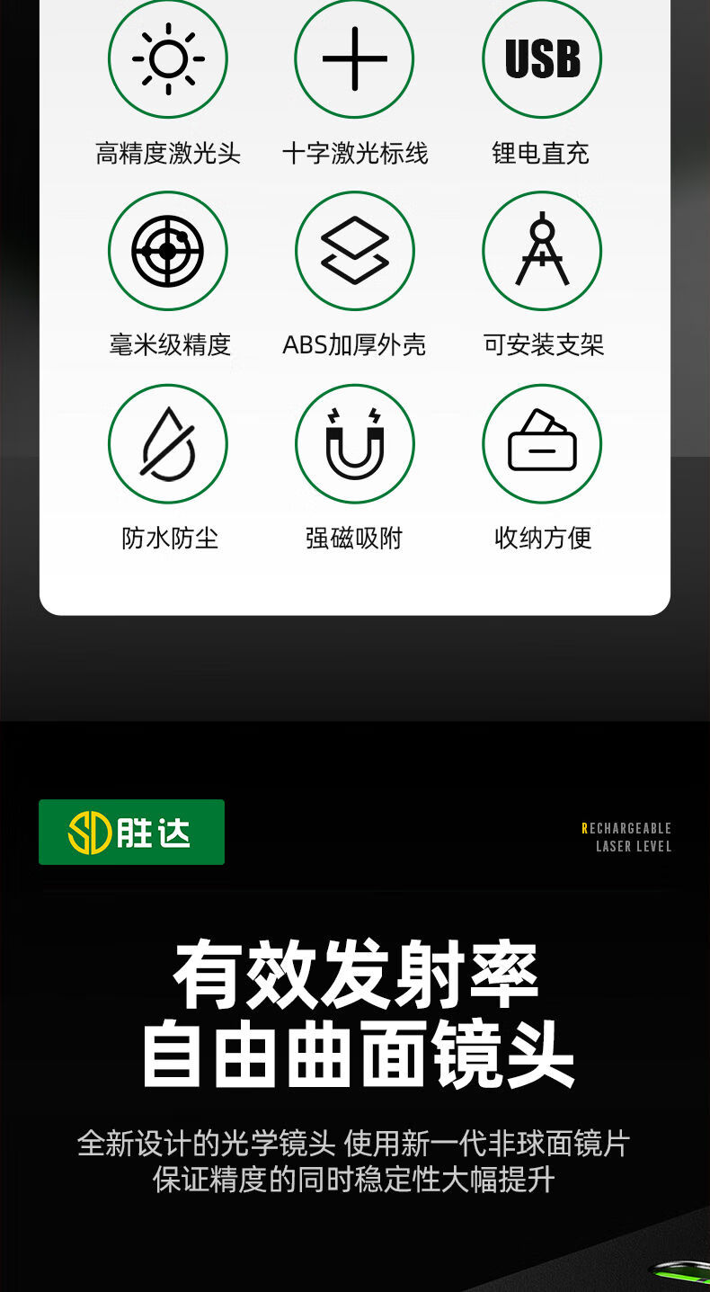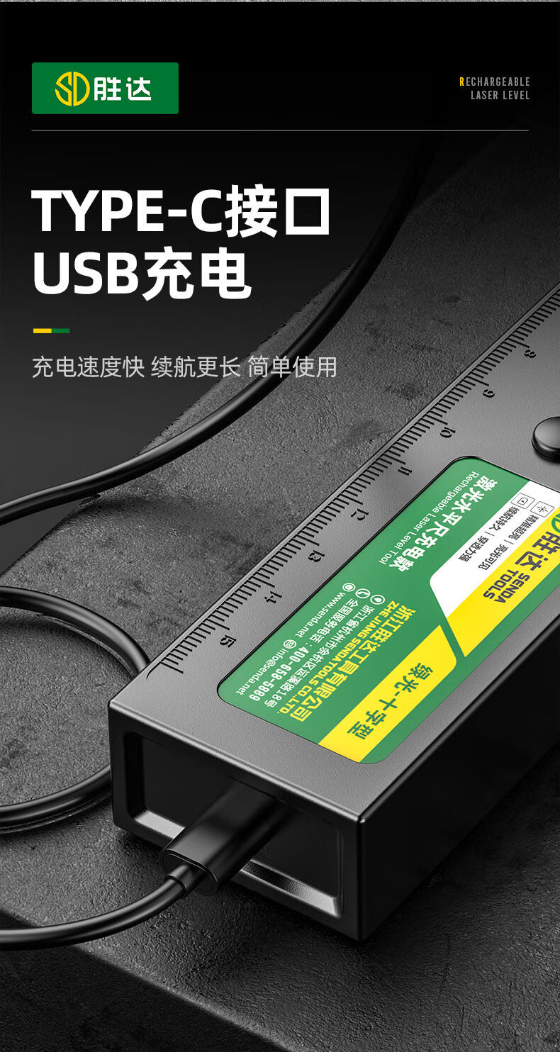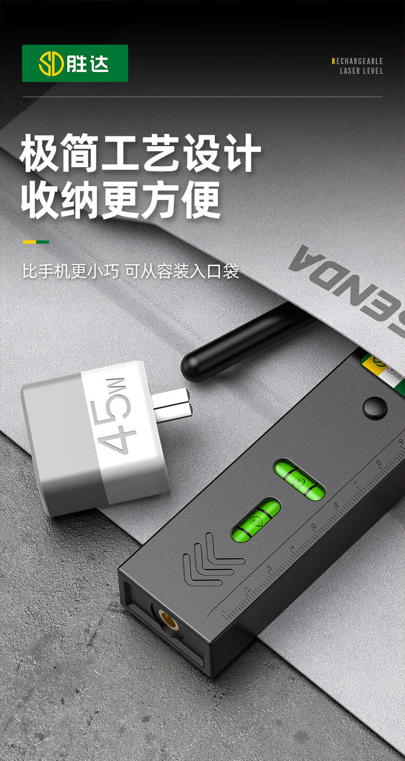Shengda Laser Level Green Cross Strong Light Thin Line Home Locator Small Measuring Instrument Line Instrument Imported LD Red Light Super Precision Double Bubble-Lithium Direct Charging Laser Cross Level
