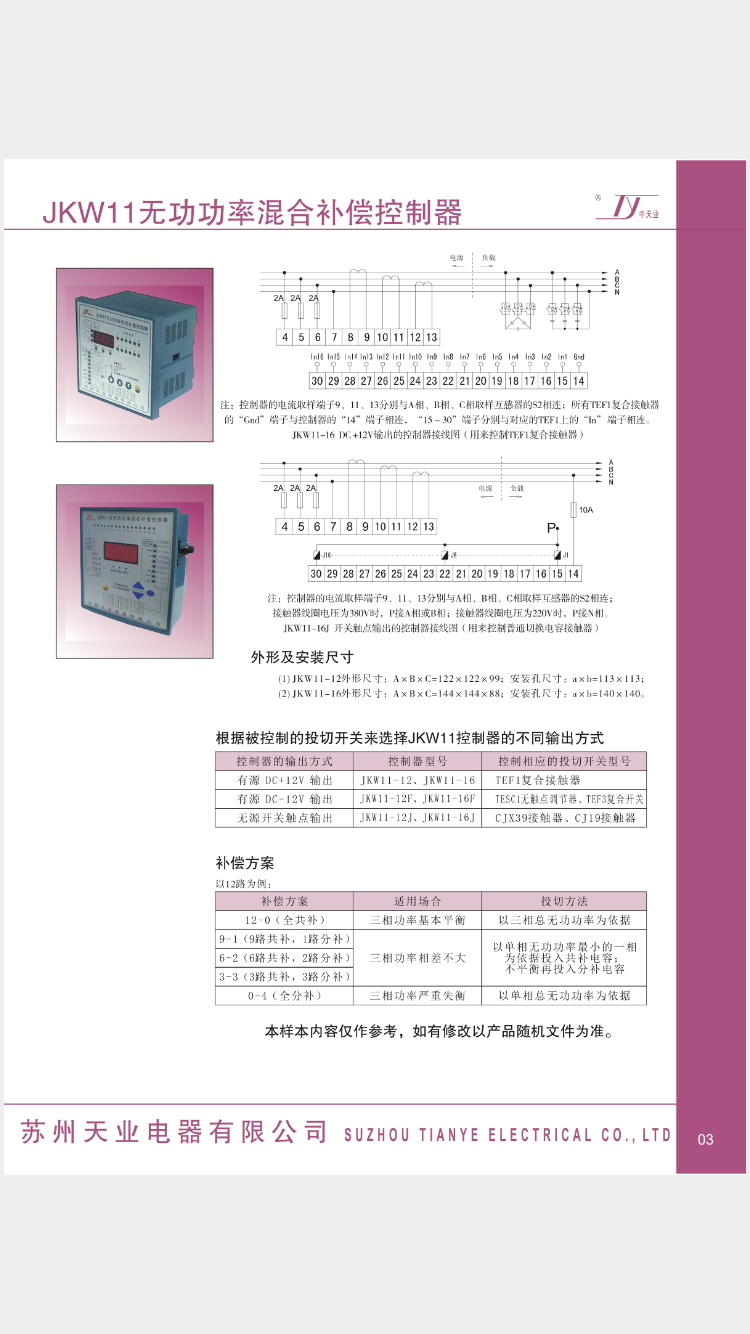 Jingsenzhen Suzhou Tianye JKW1112161824 reactive power automatic compensation capacitor controller static dynamic JKW1116 static