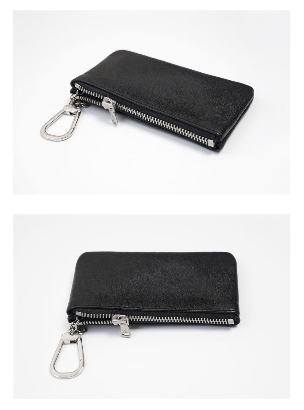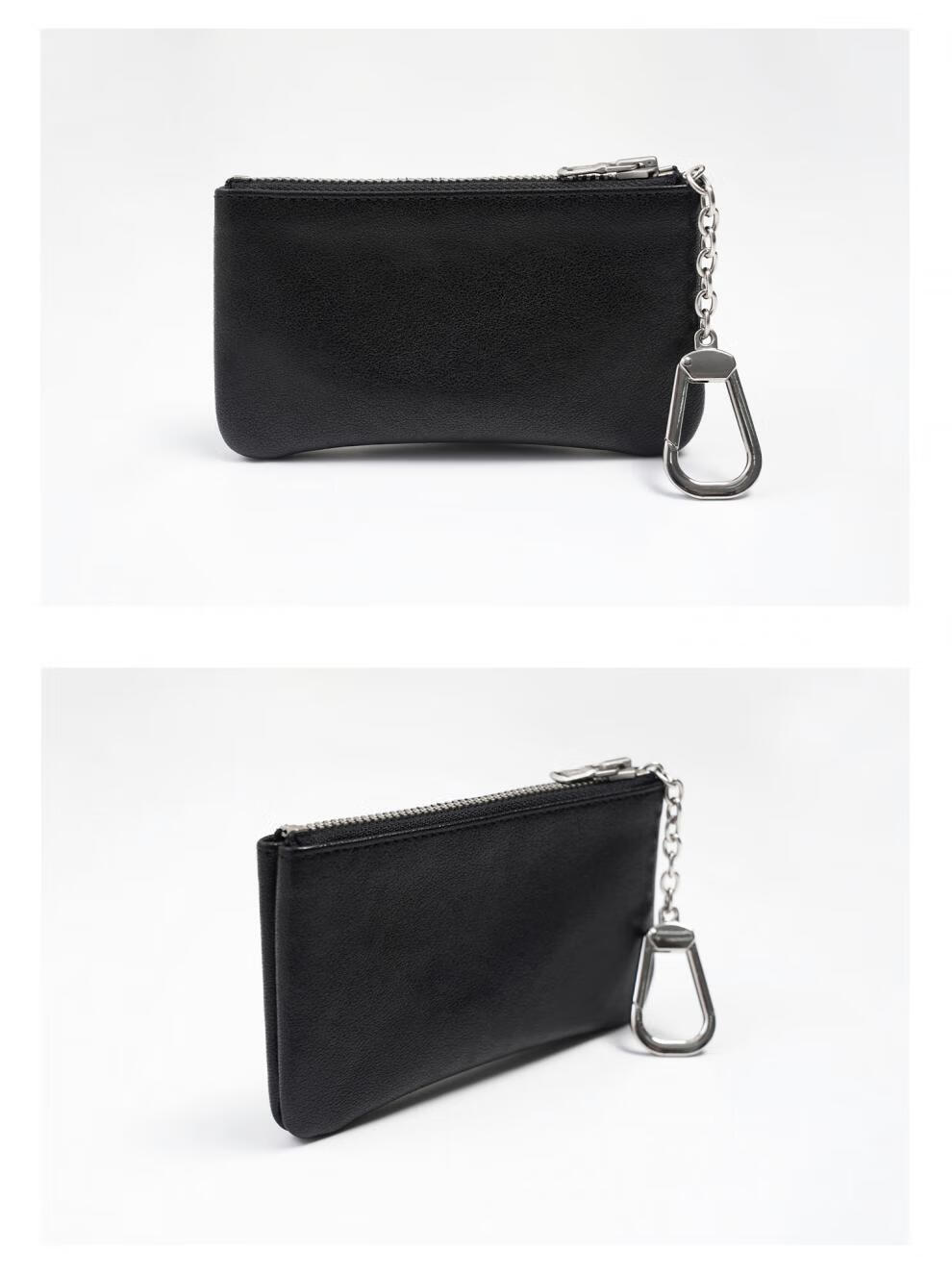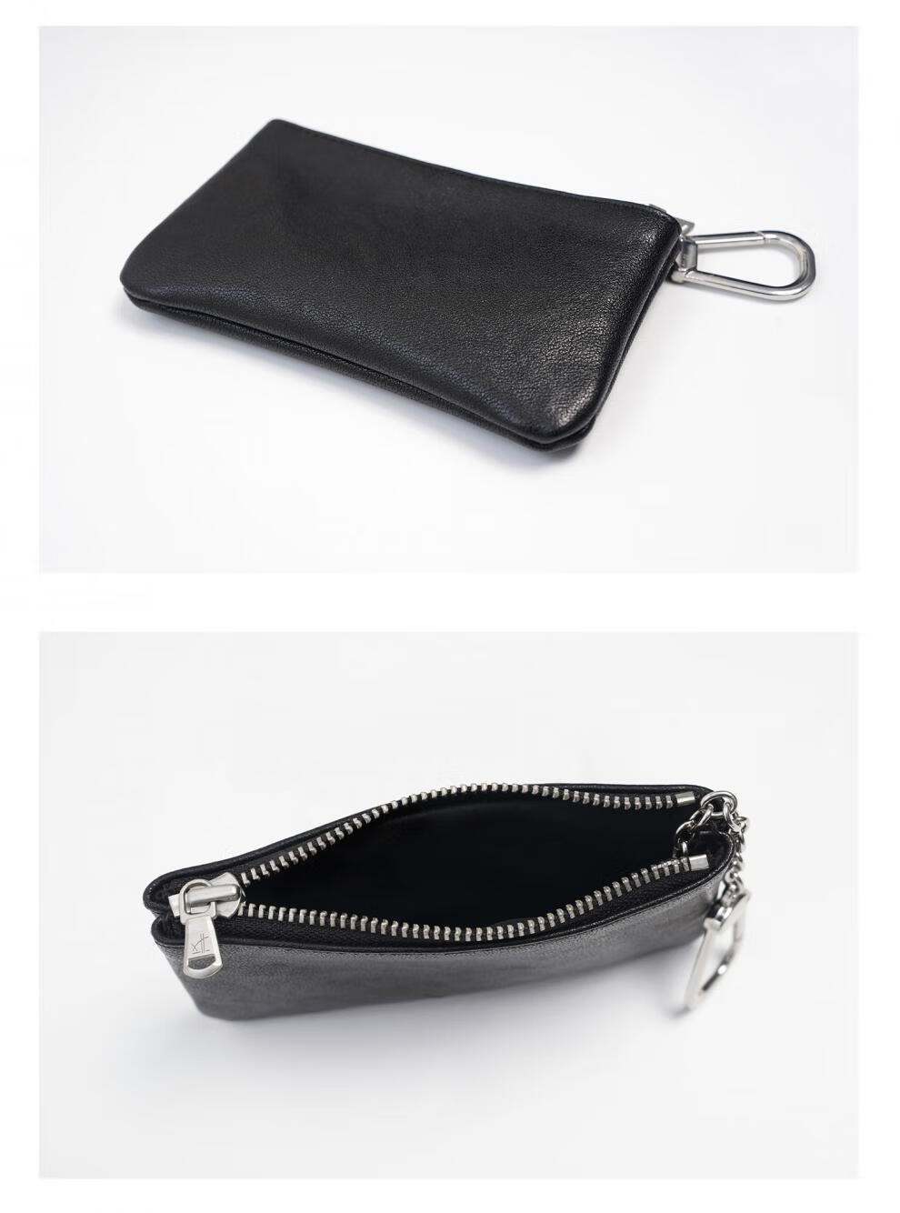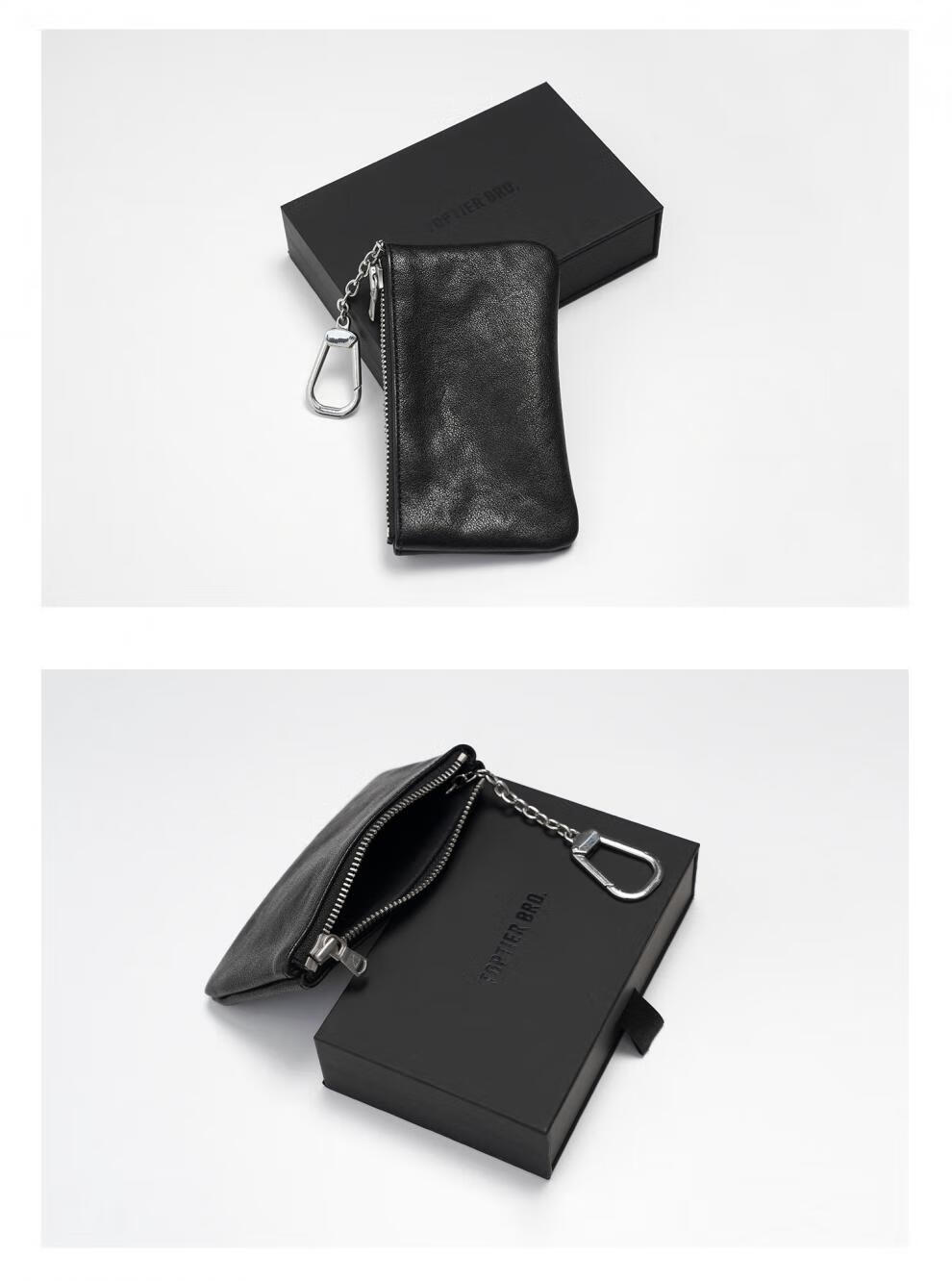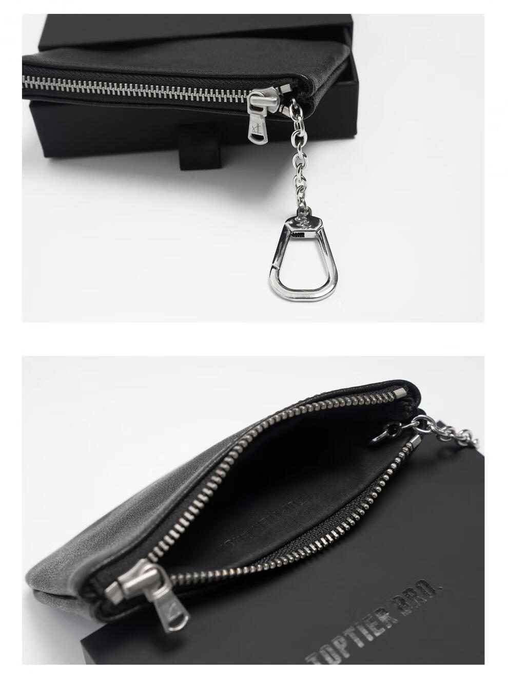TOPTIER BRO 25SS genuine cowhide card holder mini portable keychain pendant bag coin purse storage bag black ___ in stock