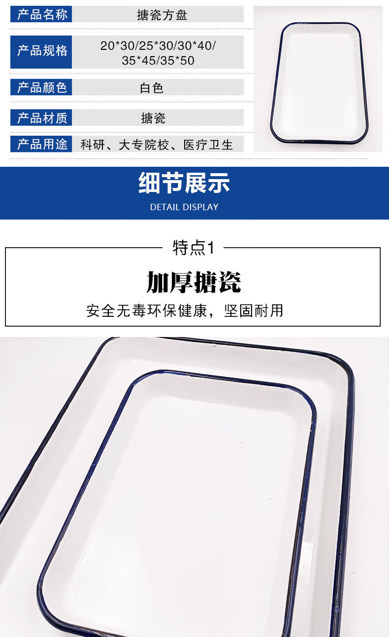 Enamel square plate 20*30 30*40 35*50mm laboratory thickened white tray rectangular plate 18*24 enamel square plate 35*50cm