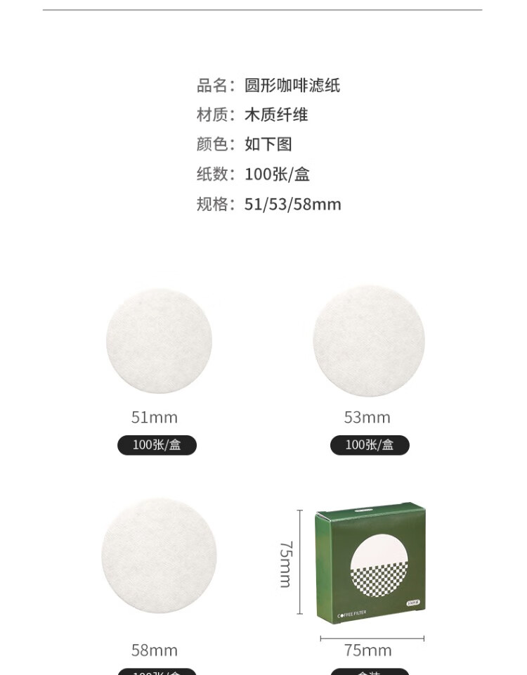 Mongdio espresso machine filter paper handle powder bowl special round coffee filter paper Moka pot 58mm universal powder bowl filter paper 51mm 100 pieces box 100 sheets