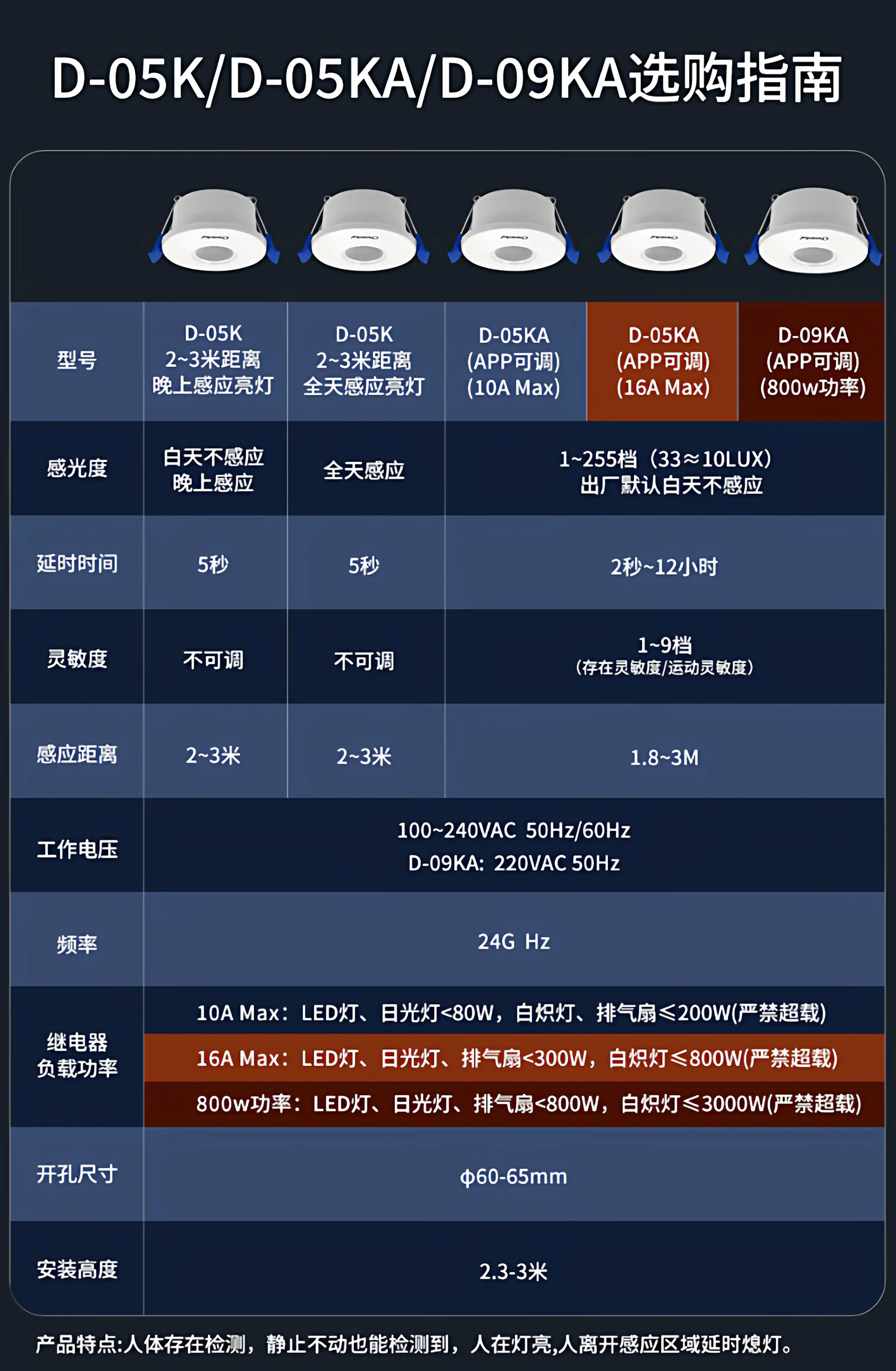 Human body presence sensor switch 220v embedded concealed corridor light when people walk out, millimeter wave radar sensor D-05K three-wire system non-adjustable evening and night