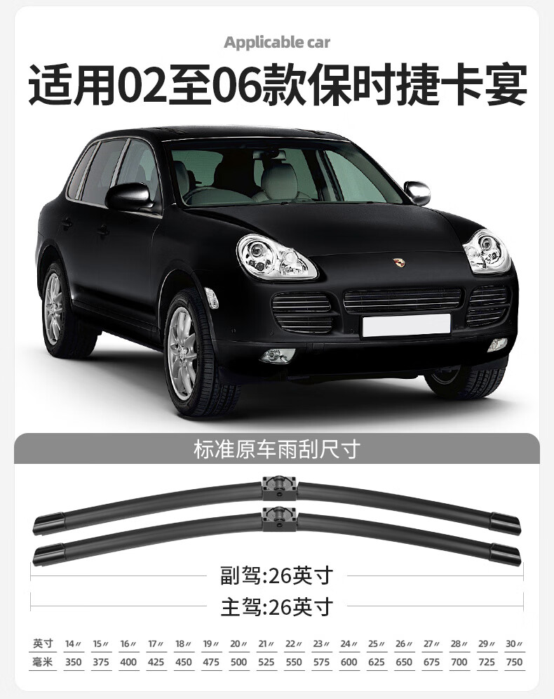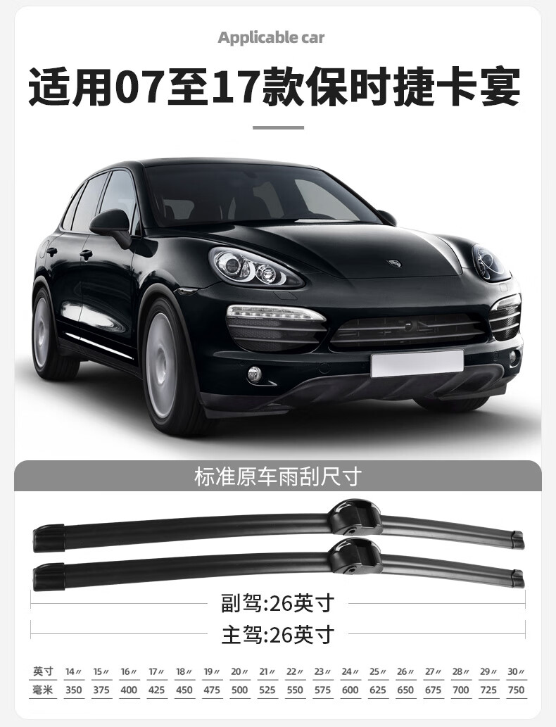Yijiu Time is suitable for Porsche Cayenne wipers, original boneless wiper strips, 18-19-20-21-22-23 models, Porsche Cayenne/Cayenne (imported)/18-25 models, front wipers, one pair