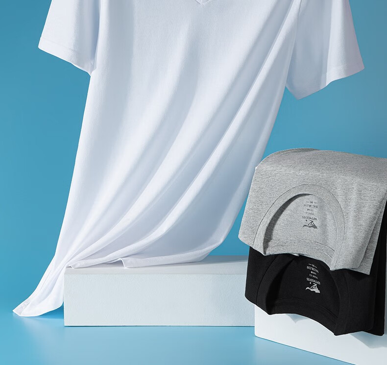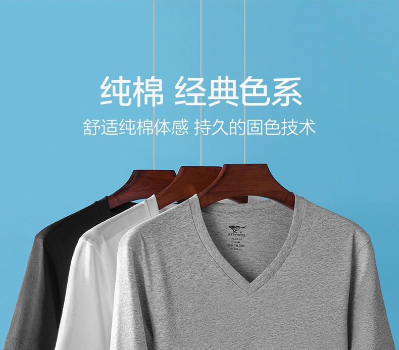 Septwolves men's pure cotton short-sleeved T-shirt vest V-neck underwear summer old man's shirt bottoming Xinjiang cotton sweatshirt men 3 pieces round neck pure cotton T-shirt gray + black + white 2XL recommended 160-170 pounds