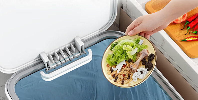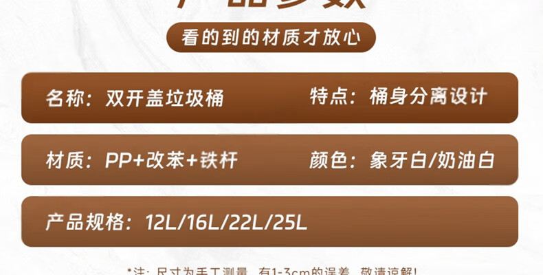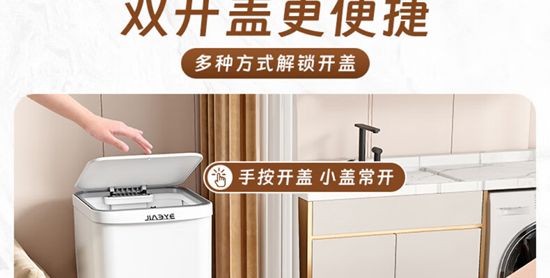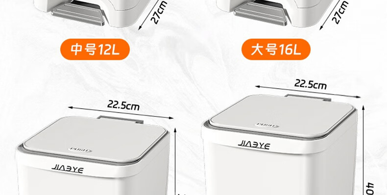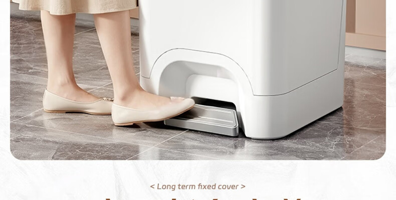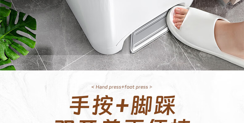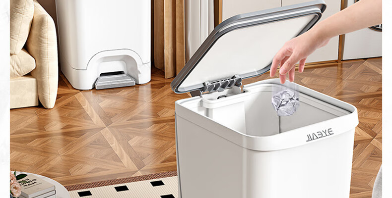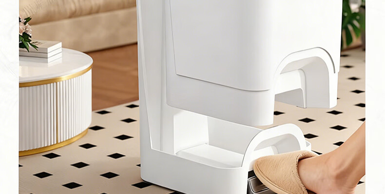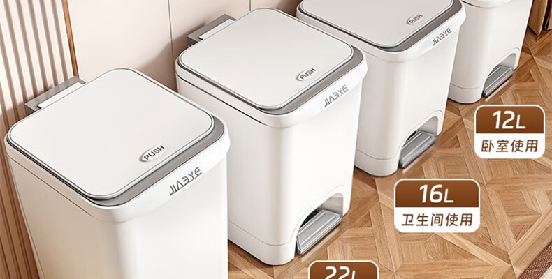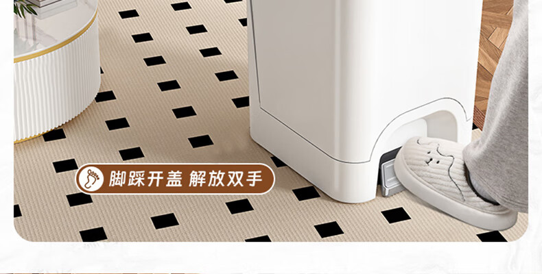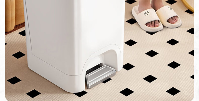 Mouth trash can household 2025 new style kitchen, toilet and bathroom special bucket with lid living room foot step large large capacity medium size 12L - ivory white foot step + hand press barrel body can be separated