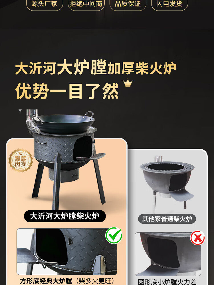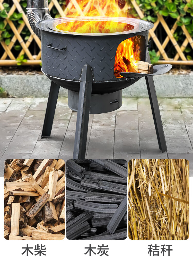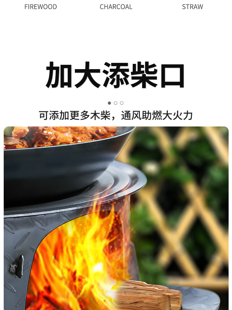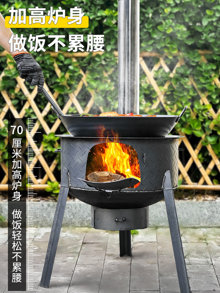 New wood stove household rural wood stove wood stove mobile stove large pot outdoor camping stove sub-floor pot classic large hearth thickened 2.2 pattern steel 48CM + stove ring 48cm