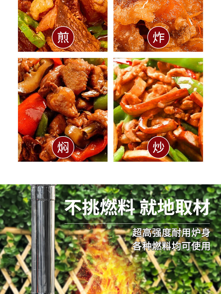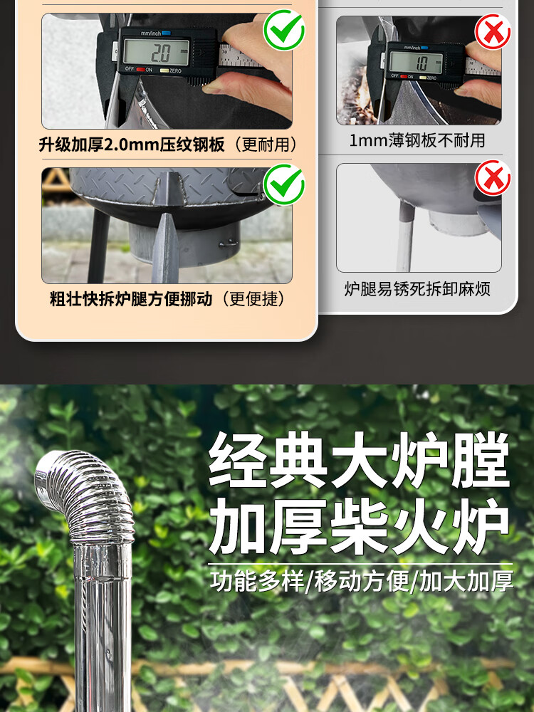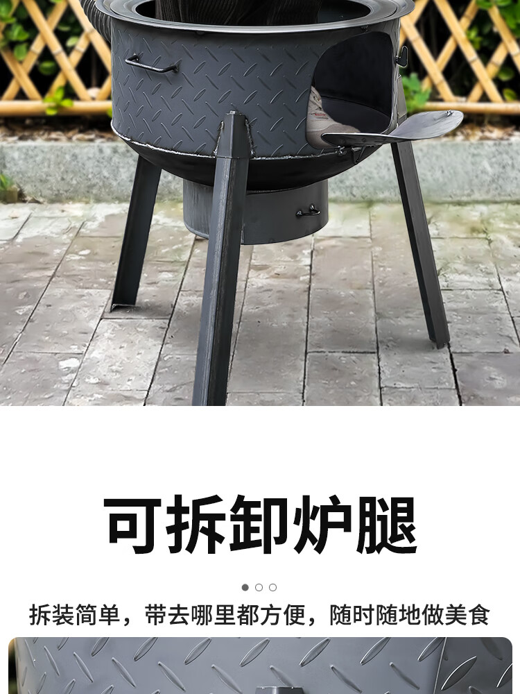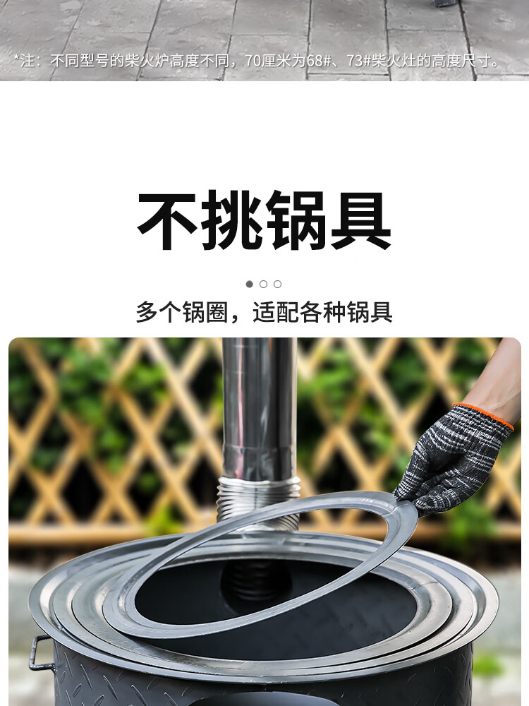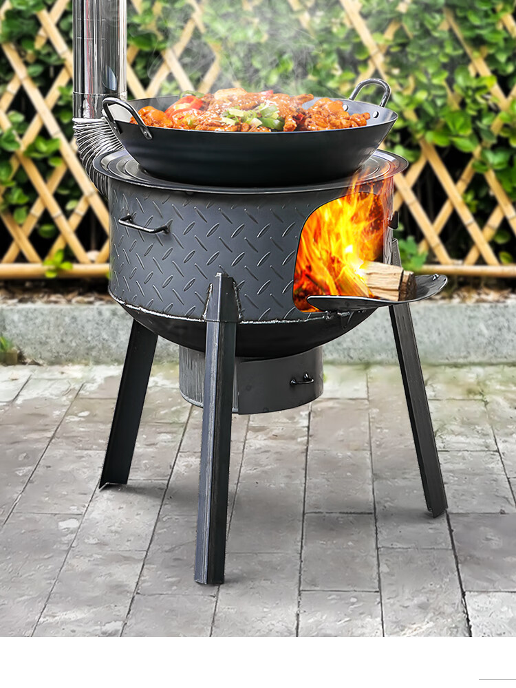 New wood stove household rural wood stove wood stove mobile stove large pot outdoor camping stove sub-floor pot classic large hearth thickened 2.2 pattern steel 48CM + stove ring 48cm