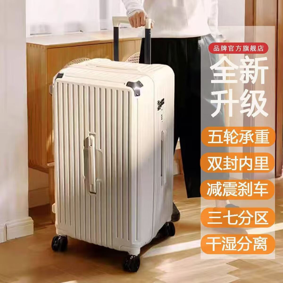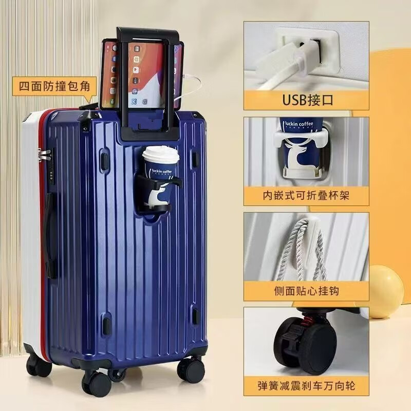 Large-capacity suitcase 32-inch travel trolley case thickened and enlarged 28-inch student leather password boarding case 26-inch meteorite black 30-inch 5-wheel brake shock absorption + antibacterial lining double closed