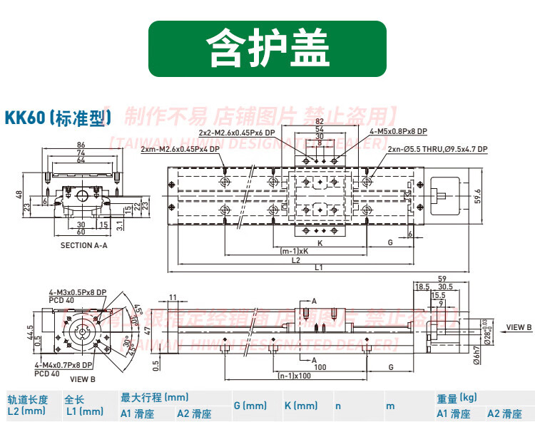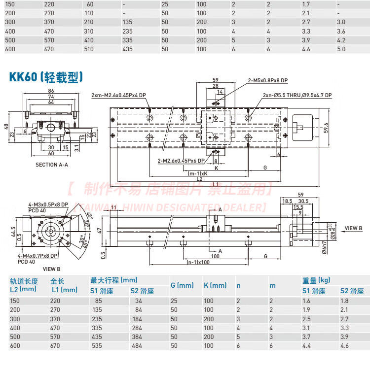 HIWIN Taiwan Shangyin KK module 60 D C P linear slide linear customization full range of accessories KK60D 05C-300A1F0 Contact customer service-3