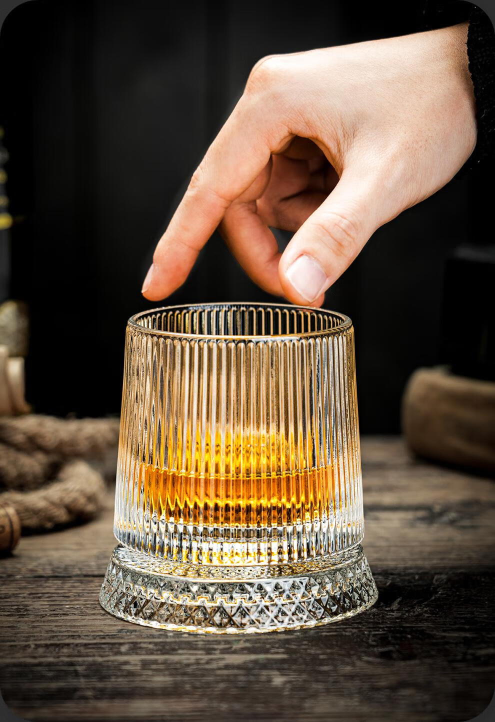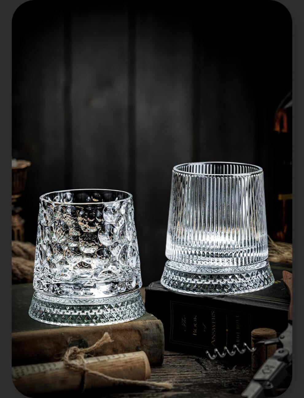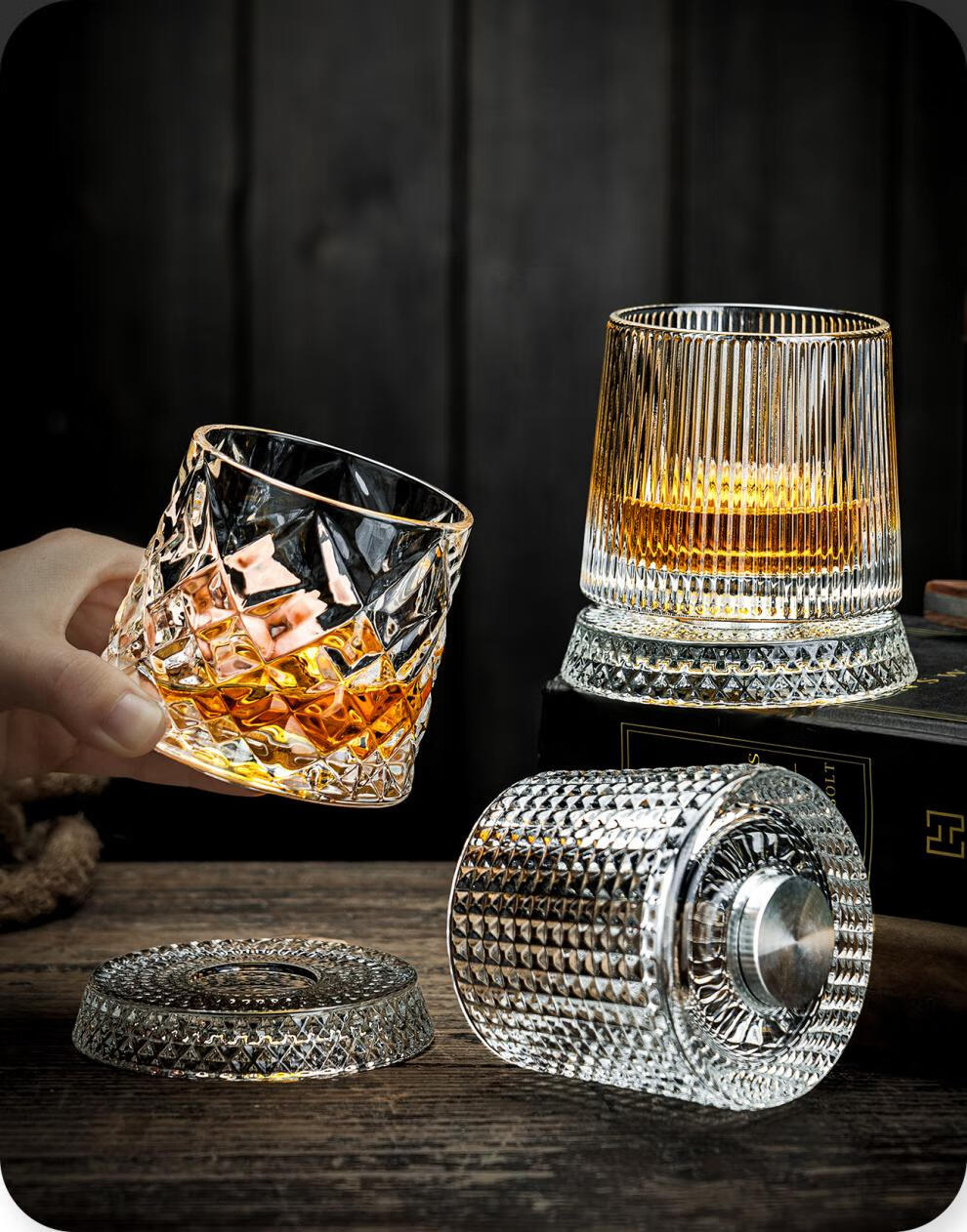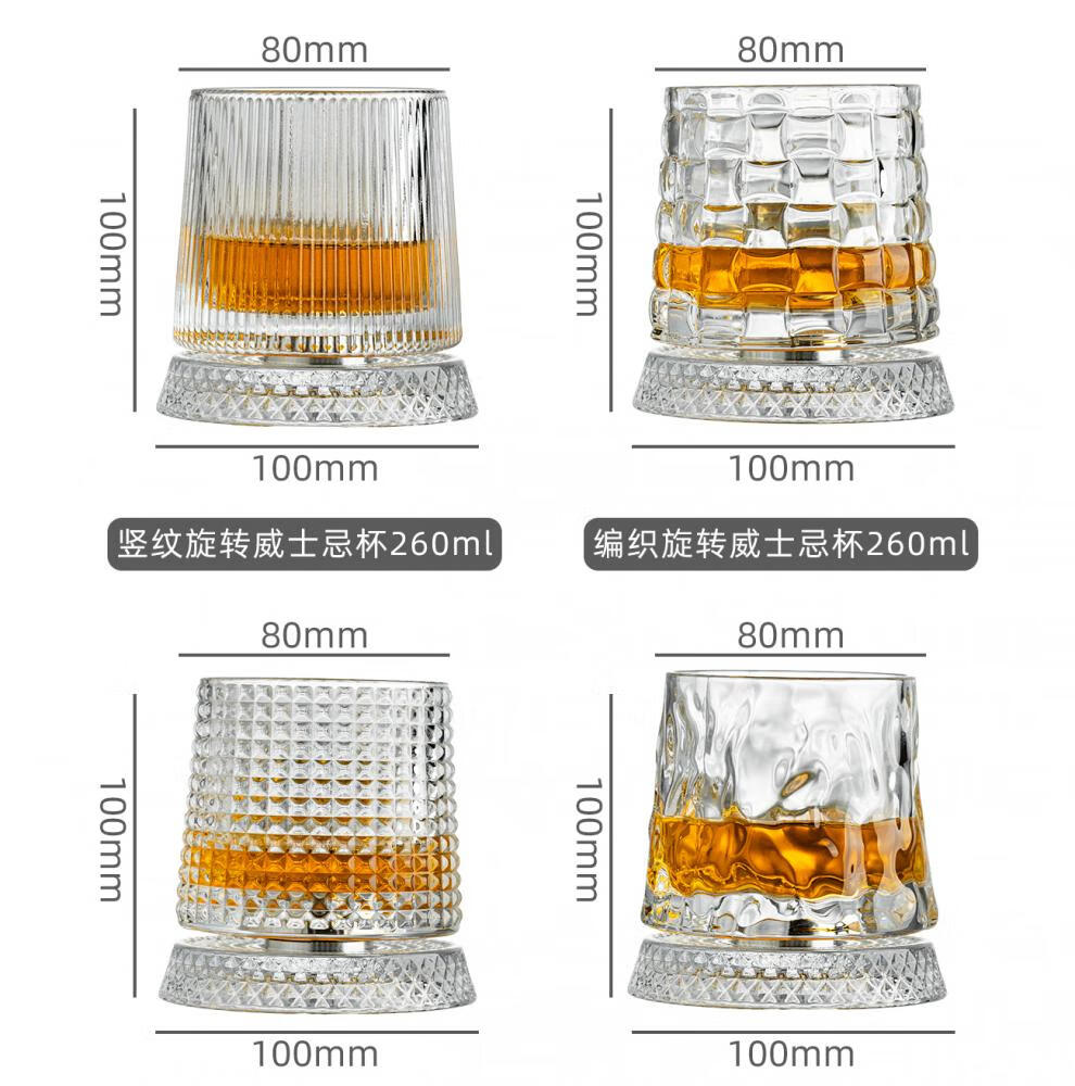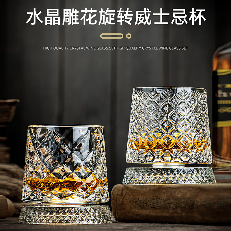 BANGBEBE Macallan's same creative crystal rotating whiskey glass style tumbler beer glass decompression foreign wine glass diamond style rotating cup (with base) set of two