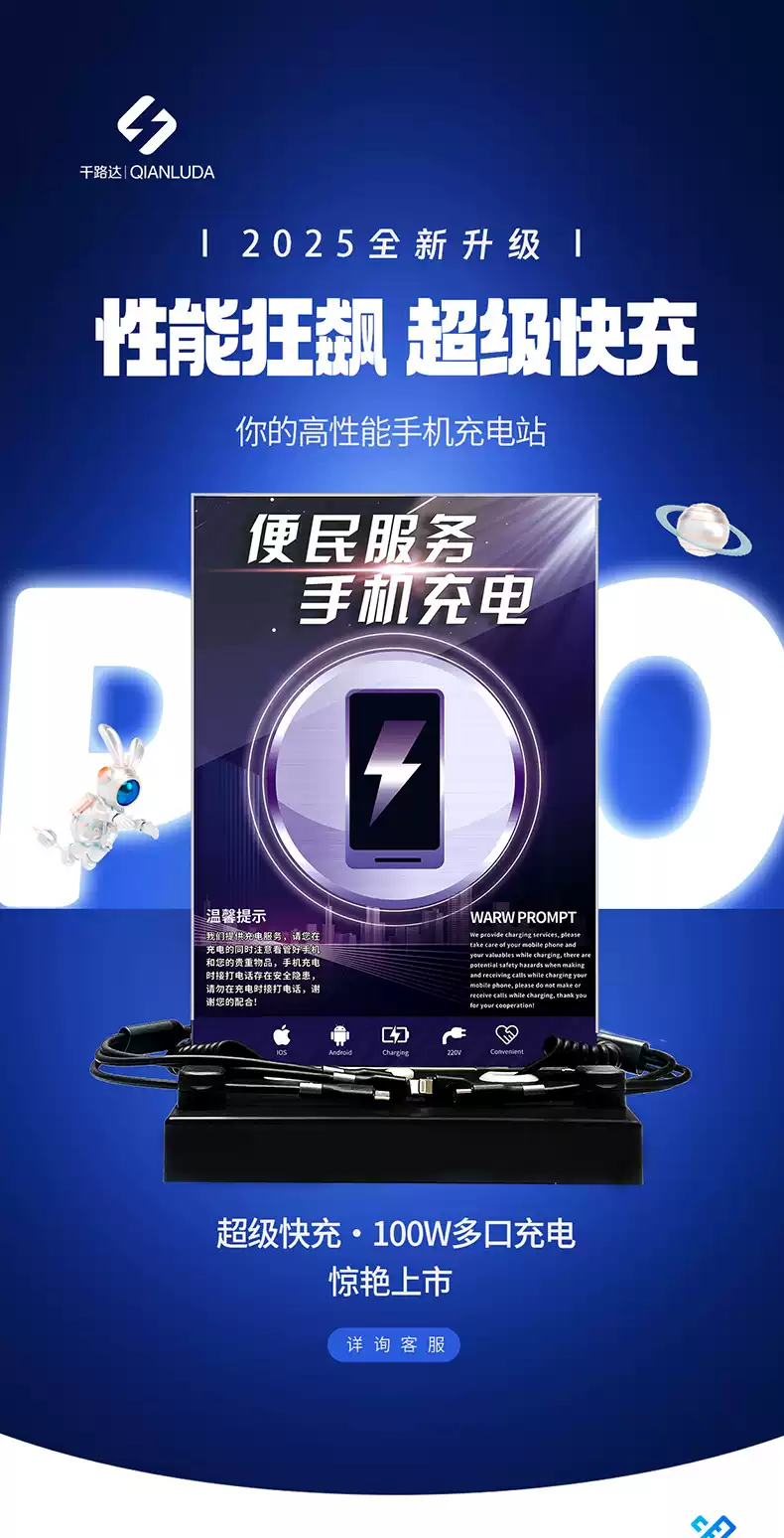 Qianluda mobile phone charging station universal multi-functional public convenience super fast charging desktop vertical self-service charging pile bank union love station mobile phone gas station charger super fast charging stainless steel 1.5 meters floor-standing
