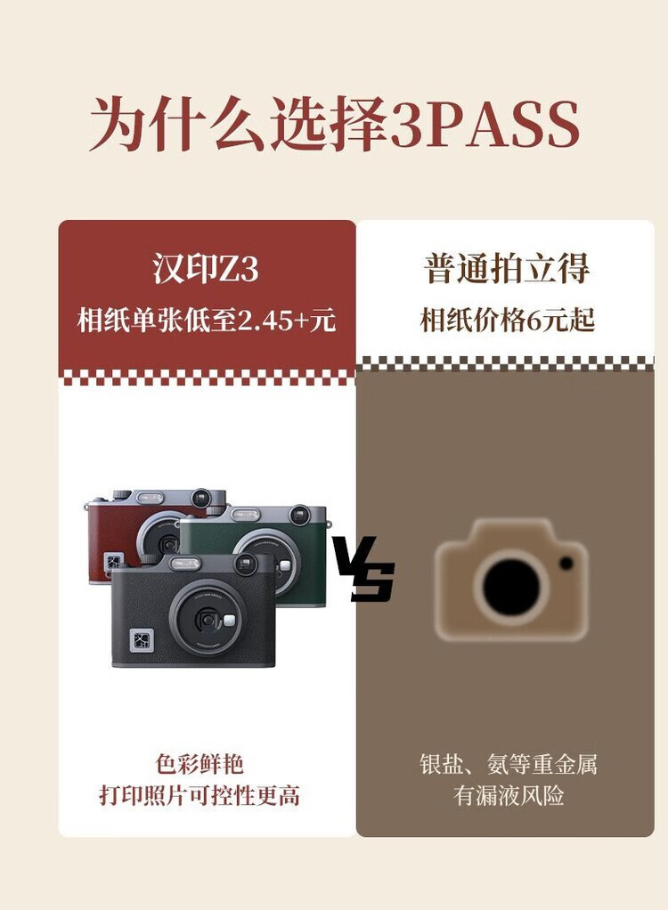 Hanyin (HPRT) Z3 instant color photo printer, commercial mobile phone, portable photo camera, student gift essential gift box + greeting card, China Red Z3 standard + customized greetings