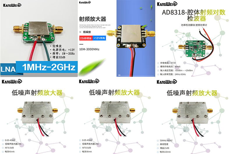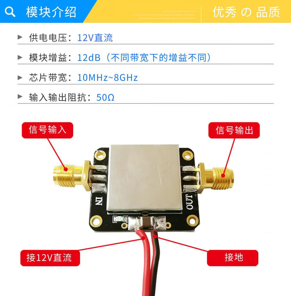 RF amplifier low noise amplifier LNA broadband 10M-8GHz gain 12dB good flatness