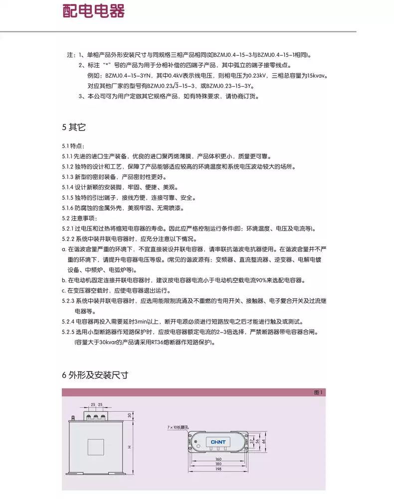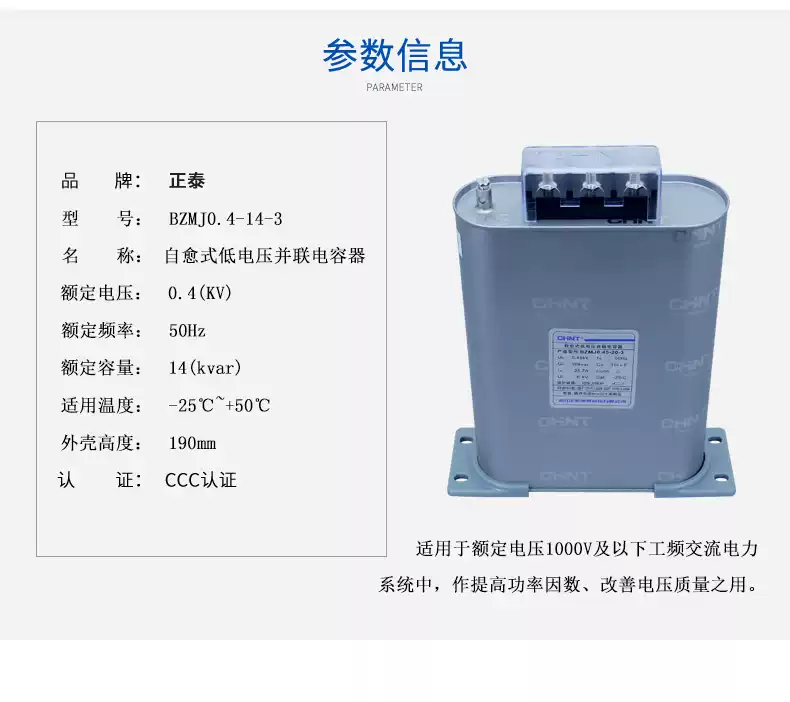 Chint Power Capacitor BZMJ0.45 self-healing low-voltage parallel capacitor BSMJ reactive power compensator film BZMJ0.45-10-3