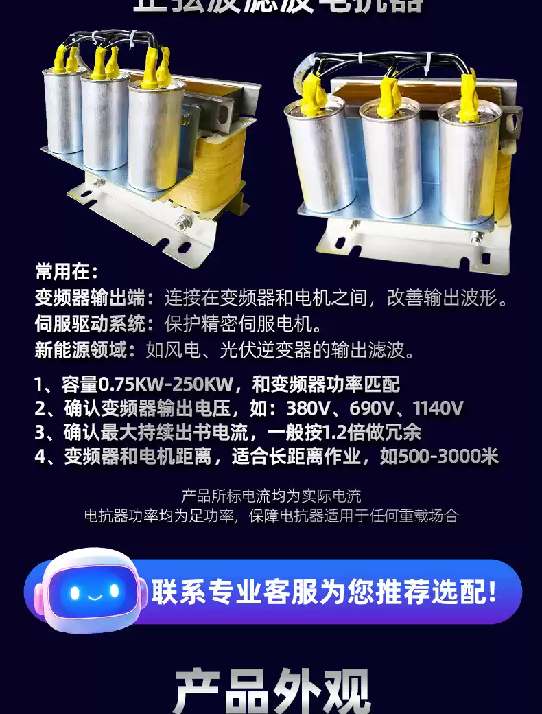 Sine wave filter three-phase inverter output PWM square wave LC waveform converter DUDT filter reactor Customized DUDT reactor contact customer service to enjoy Customized DUDT reactor contact customer service to enjoy