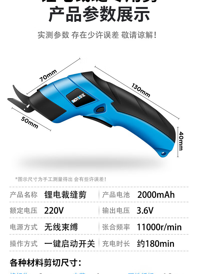 He Jiagong electric scissors, cloth cutting artifact, small electric scissors for tailors, clothing fabric cutting machine, electric cutting knife, 3 points 6V rechargeable + tungsten steel blade * 1 carton