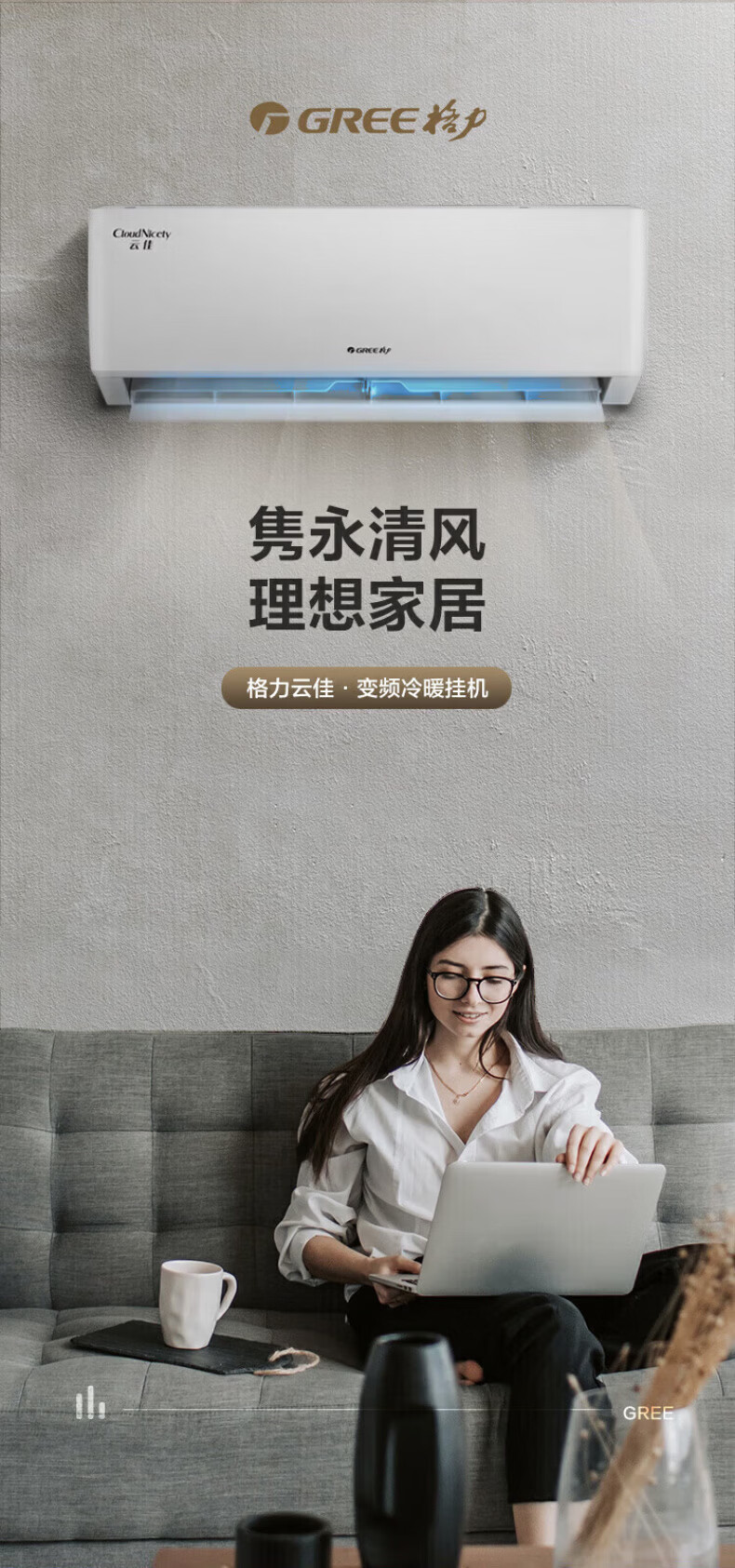 Gree (GREE) air conditioner Yunjia large 1.5 hp new first-class energy efficiency variable frequency heating and cooling energy-saving wall-mounted self-cleaning unit large 1.5 hp first-class energy efficiency Yunjia Pro