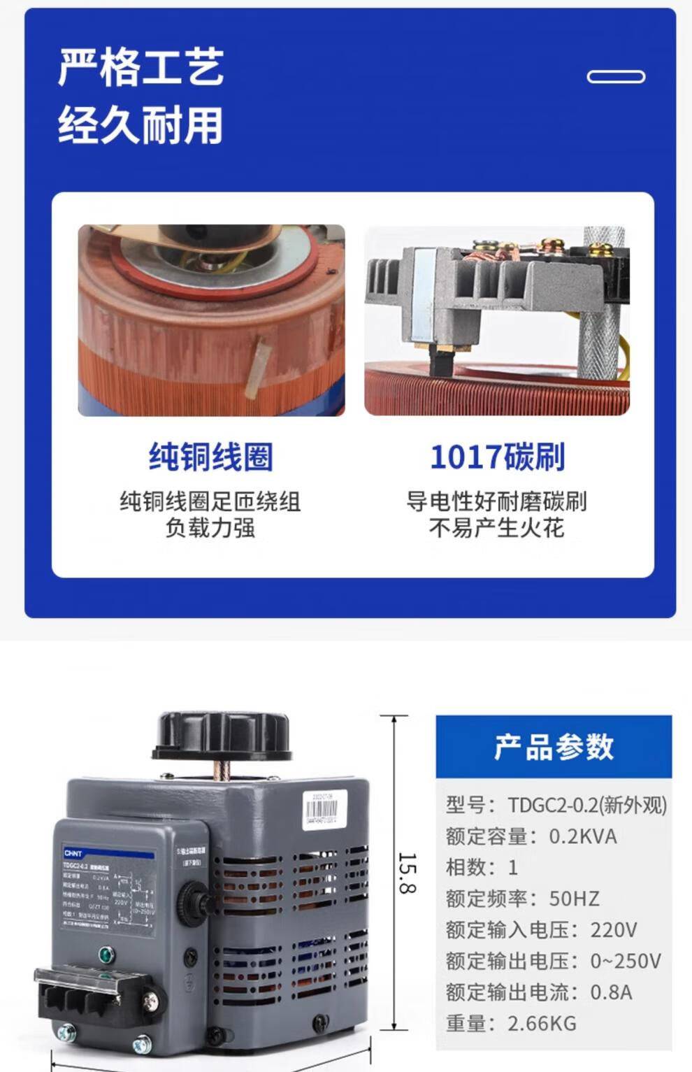 Chint AC contact voltage regulator TDGC2 high power single-phase 220V three-phase 380v transformer regulator TDGC2-0.2_input voltage 220V