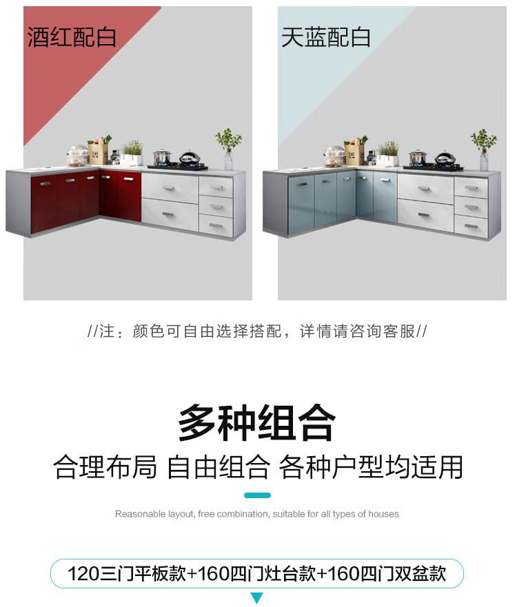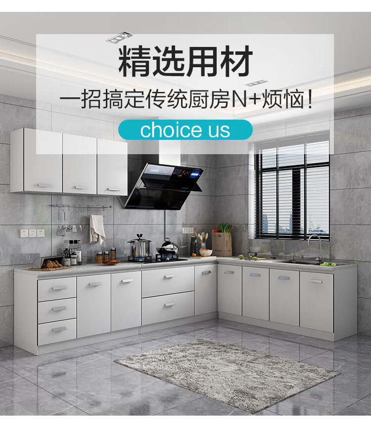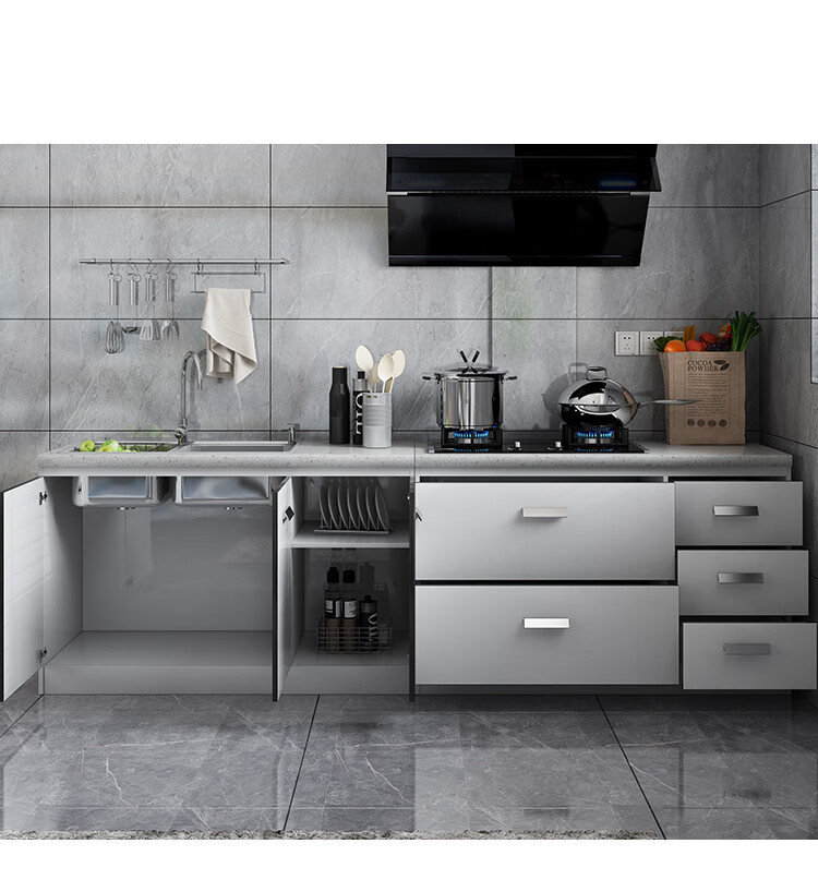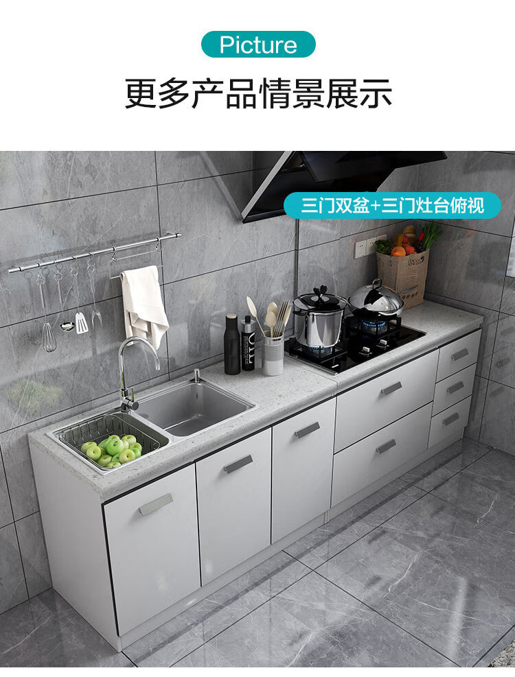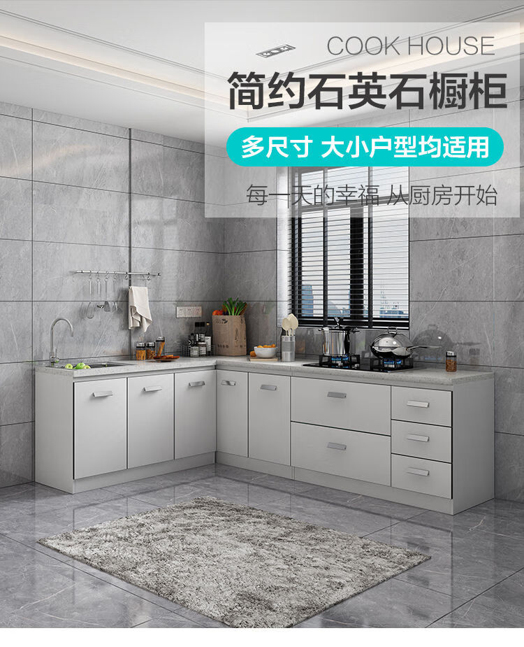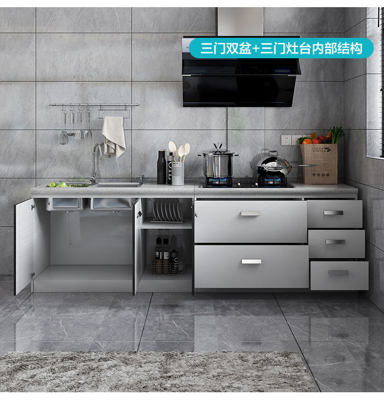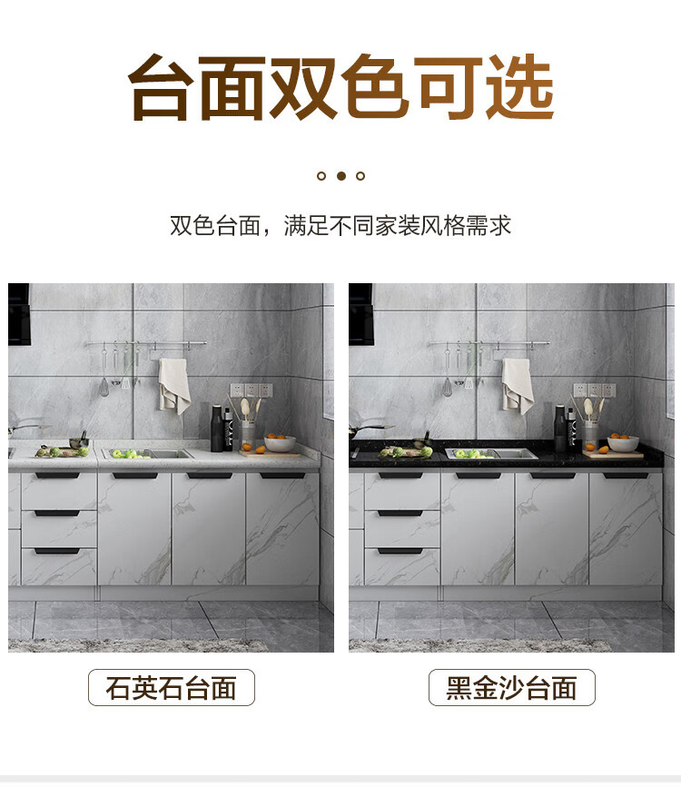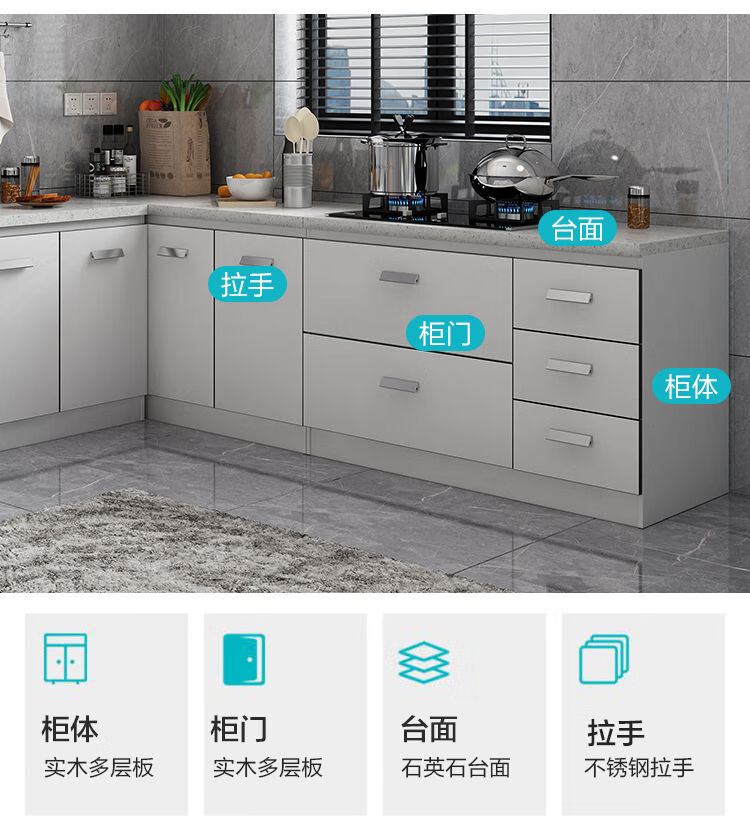 Integrated kitchen cabinets, stove cabinets, integrated simple assembly, quartz stone countertops, multi-functional storage, ready-made finished cabinets, yellow double doors
