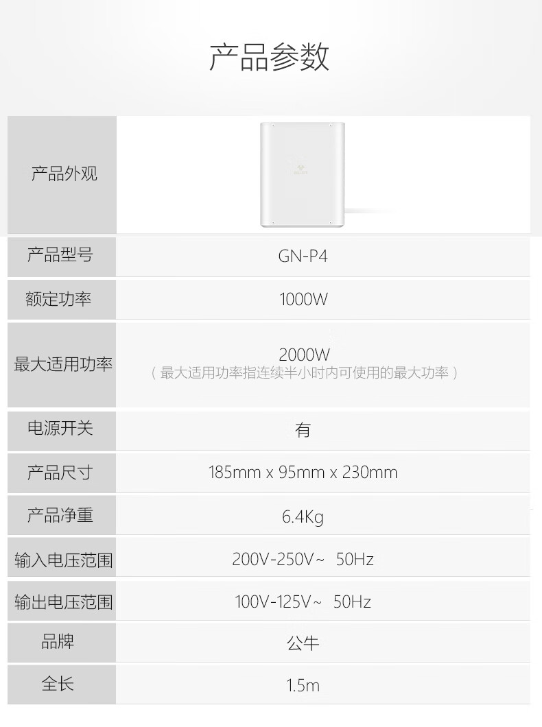 Bull transformer American Japanese electrical appliance power socket converter socket 110V and 220V voltage convertible high power 2000W_GN-P4