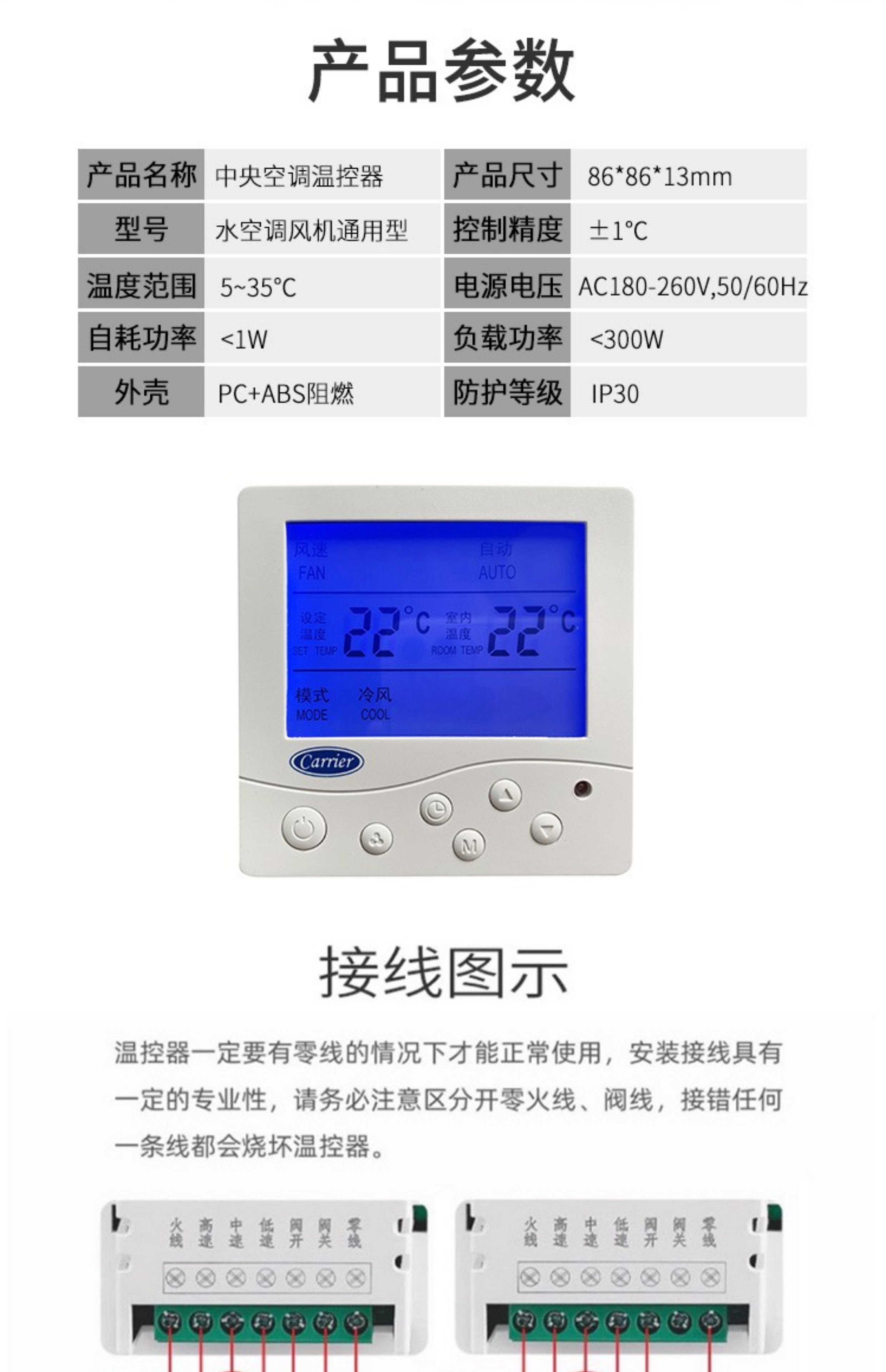 Carrier central air conditioning thermostat LCD panel three-speed remote control 805 Carrier