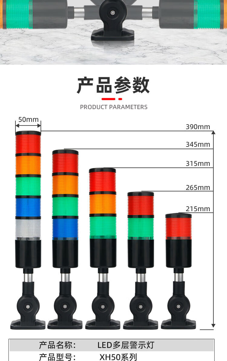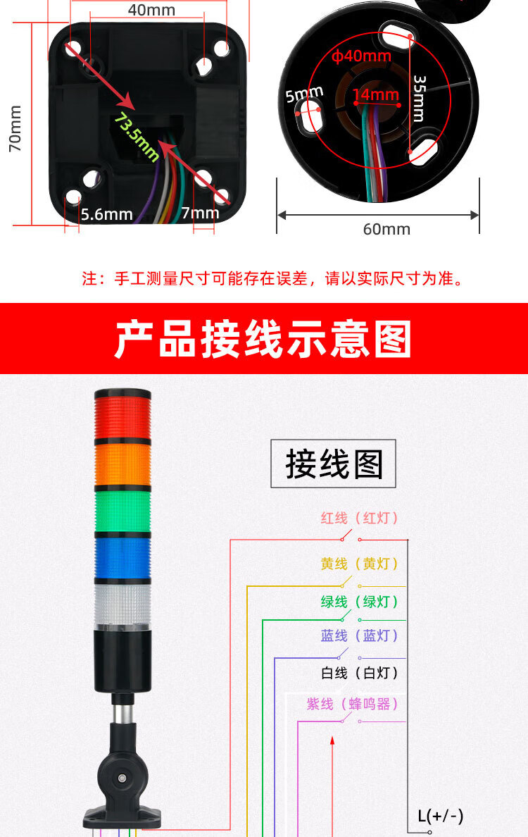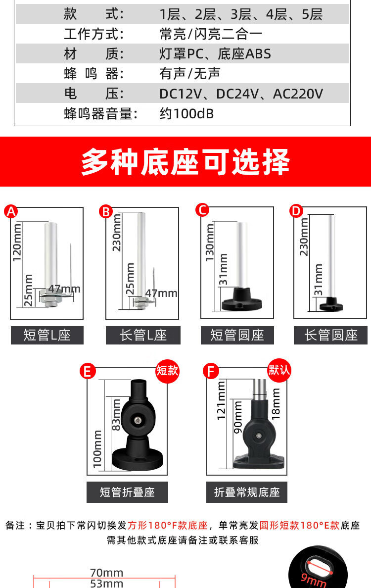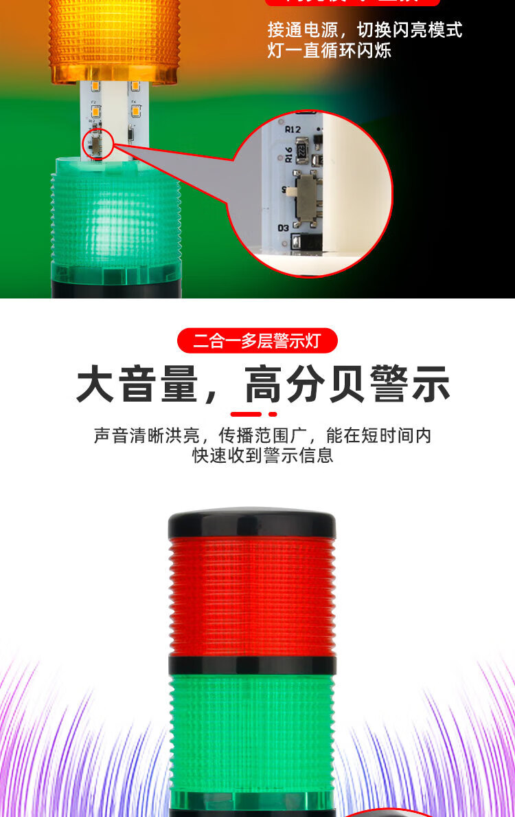 Three-color light multi-layer warning light LED equipment signal flashing alarm indicator light foldable 24V sound and light alarm three-layer sound (constant flashing switchable) 12-24V