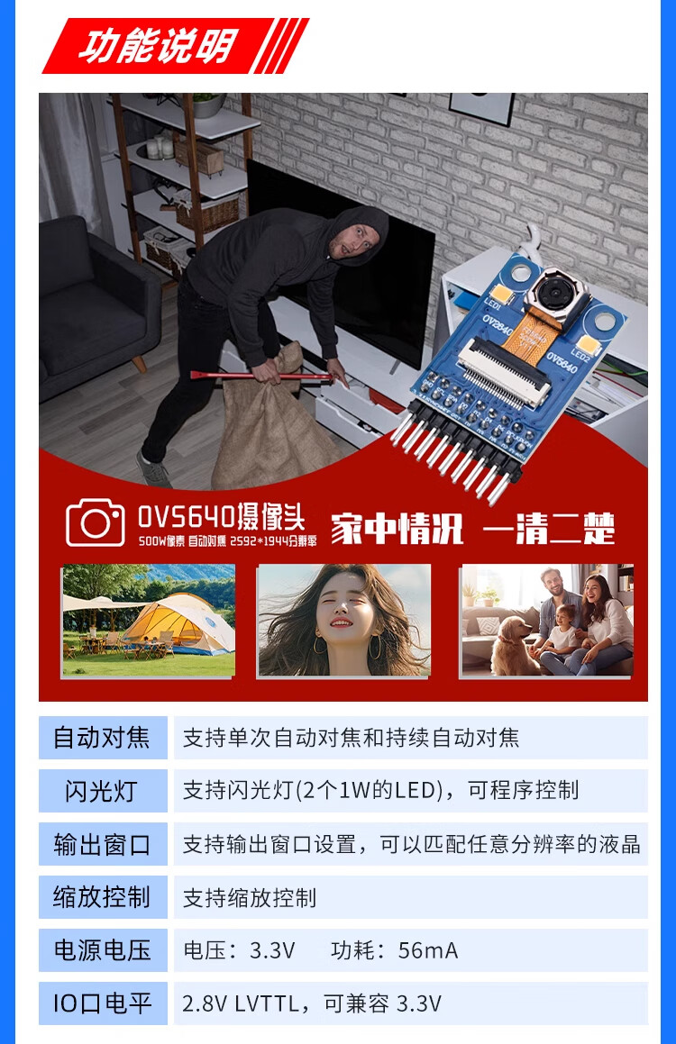 Dengshitang ov7670 camera module OV5640/OV2640/OV7725/camera module high resolution autofocus embedded development image acquisition 500W pixel camera maker must enter OV5640 camera module black