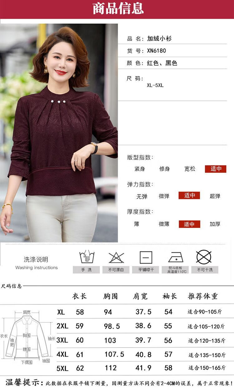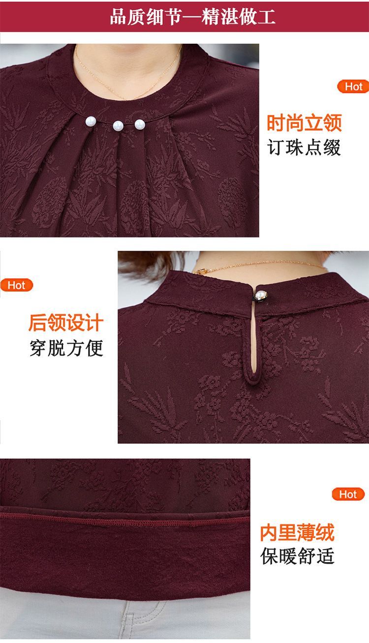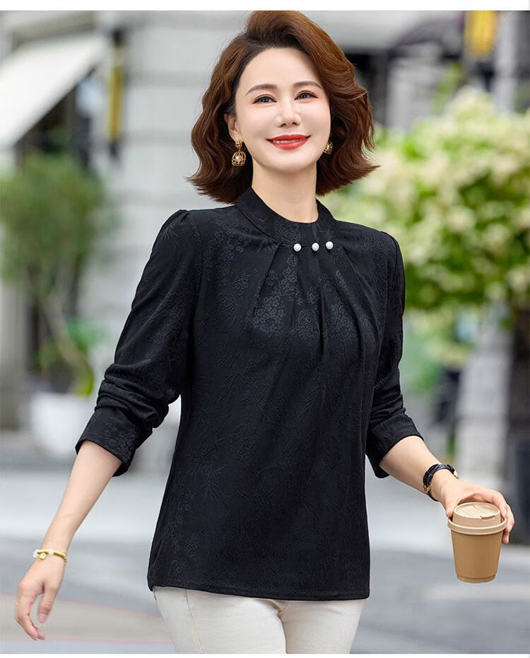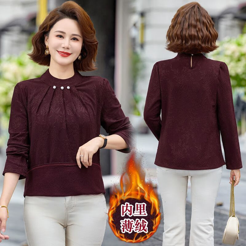 Woodpecker (TUCANO) new autumn and winter long-sleeved velvet small stand-up collar bottoming shirt for middle-aged mothers, fashionable and stylish jacquard small shirt to keep warm, black, thin velvet lining, 3XL (recommended 120-135 pounds) shop