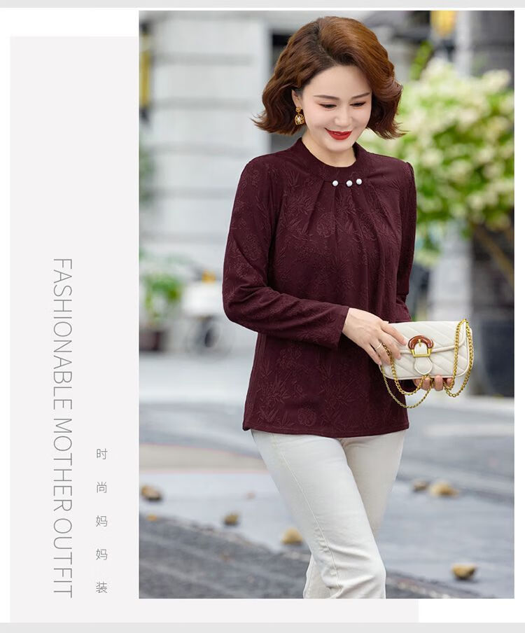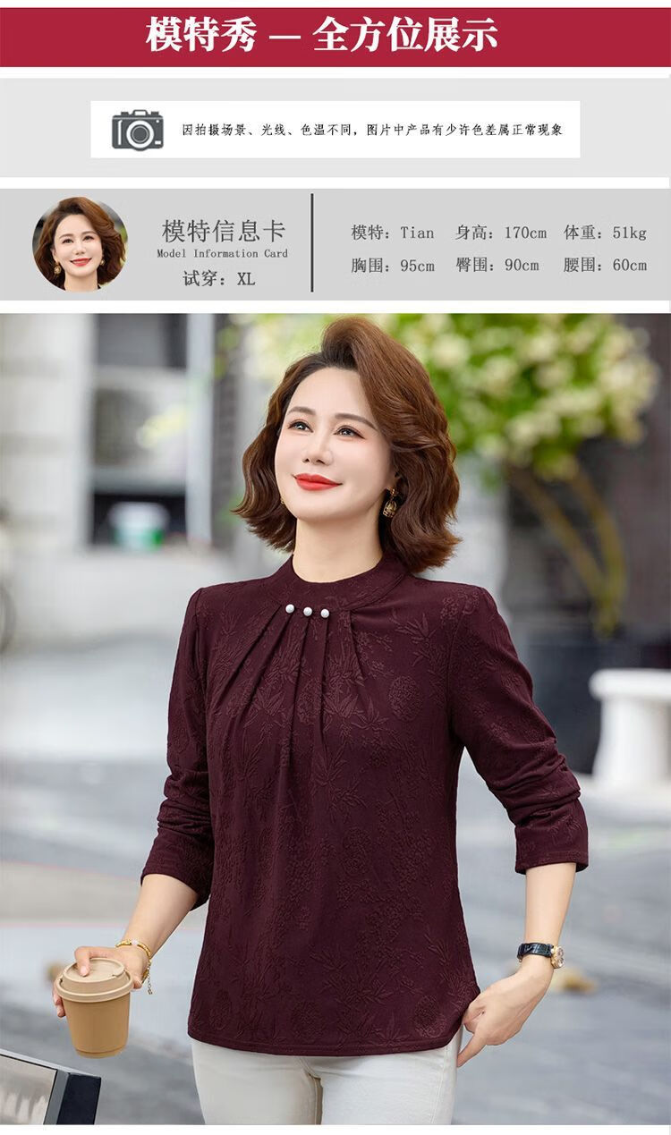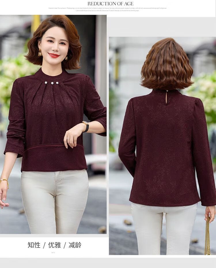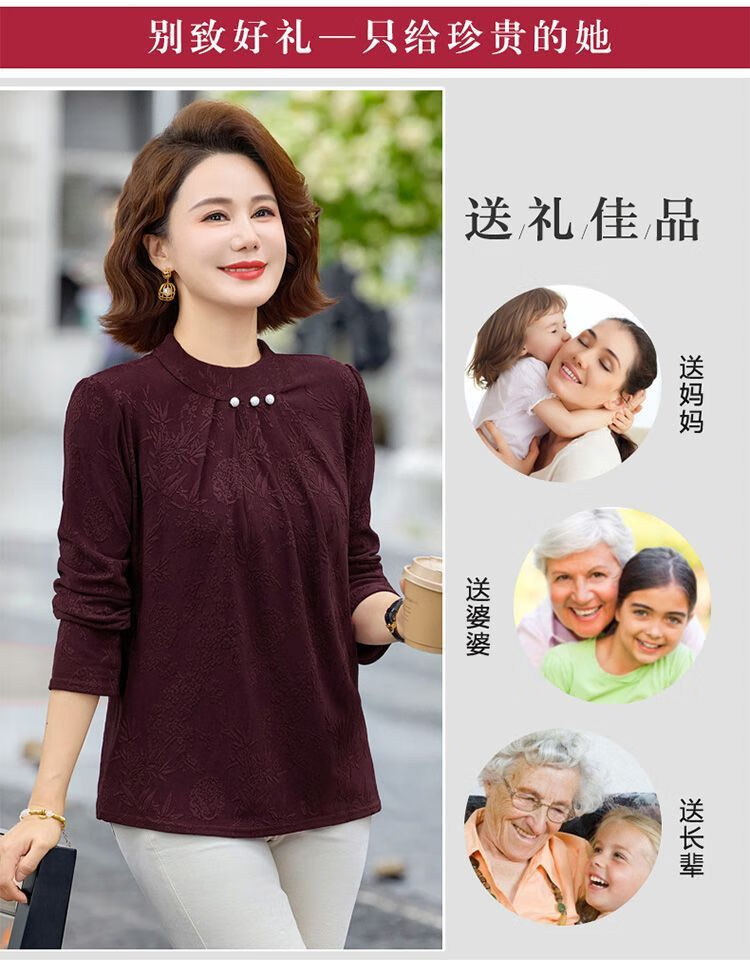 Woodpecker (TUCANO) new autumn and winter long-sleeved velvet small stand-up collar bottoming shirt for middle-aged mothers, fashionable and stylish jacquard small shirt to keep warm, black, thin velvet lining, 3XL (recommended 120-135 pounds) shop