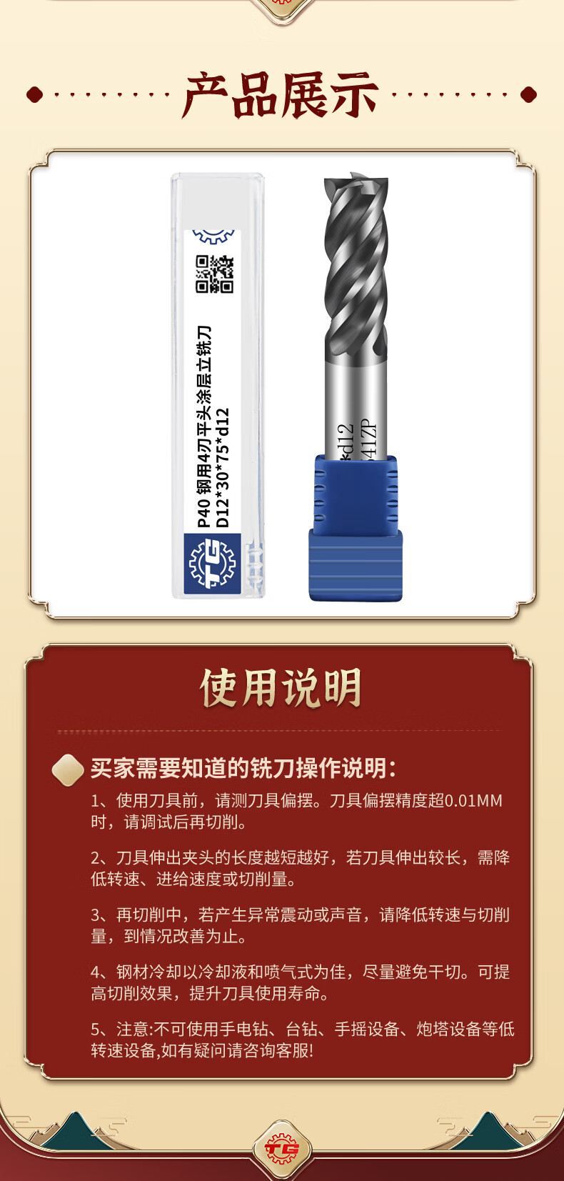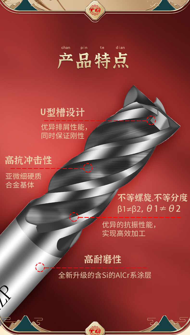 Tiangong P40 general steel processing four-edge coated milling cutter solid carbide milling cutter straight shank tungsten steel flat knife D6*24*75*d6