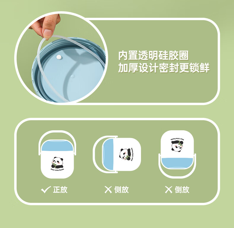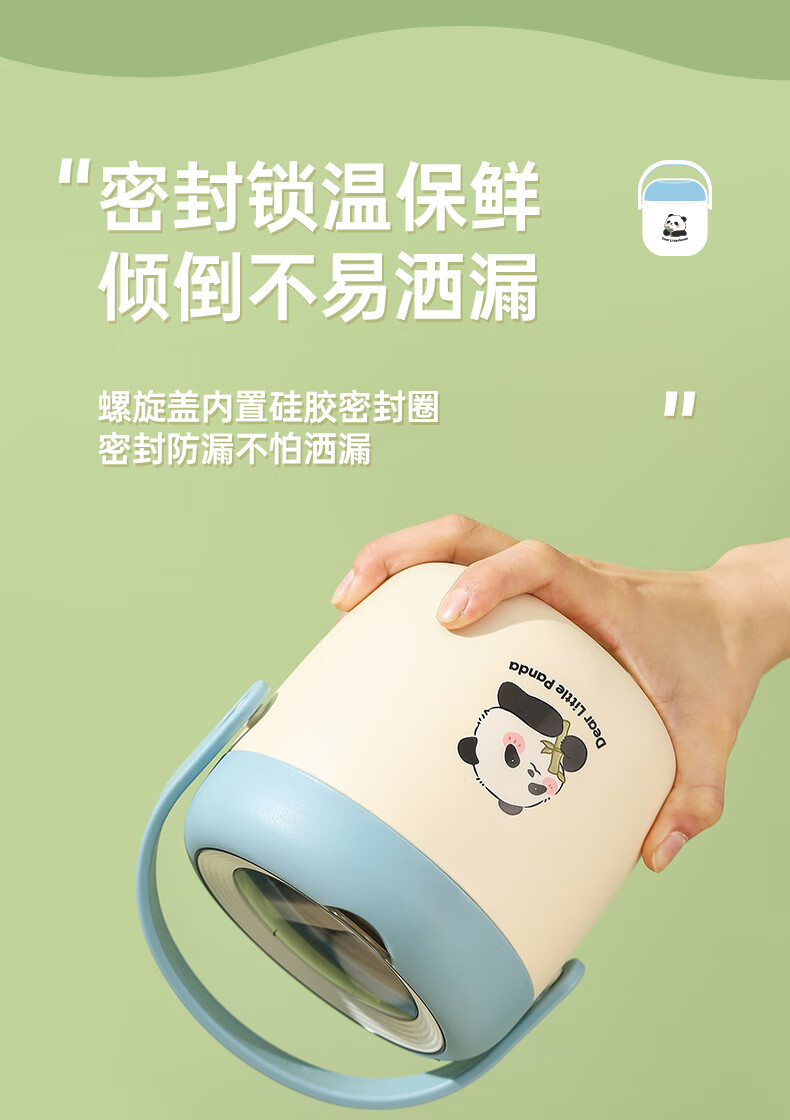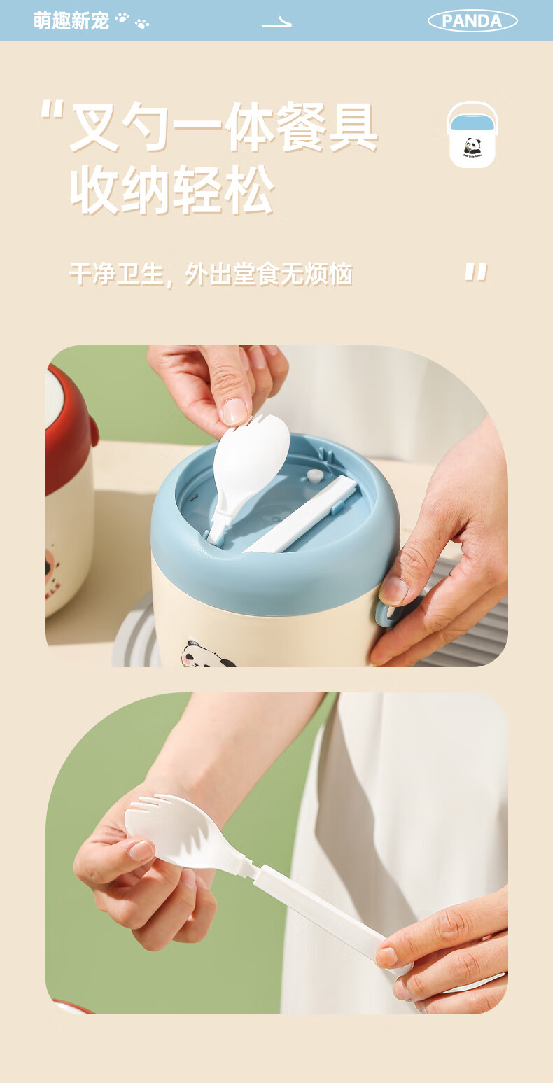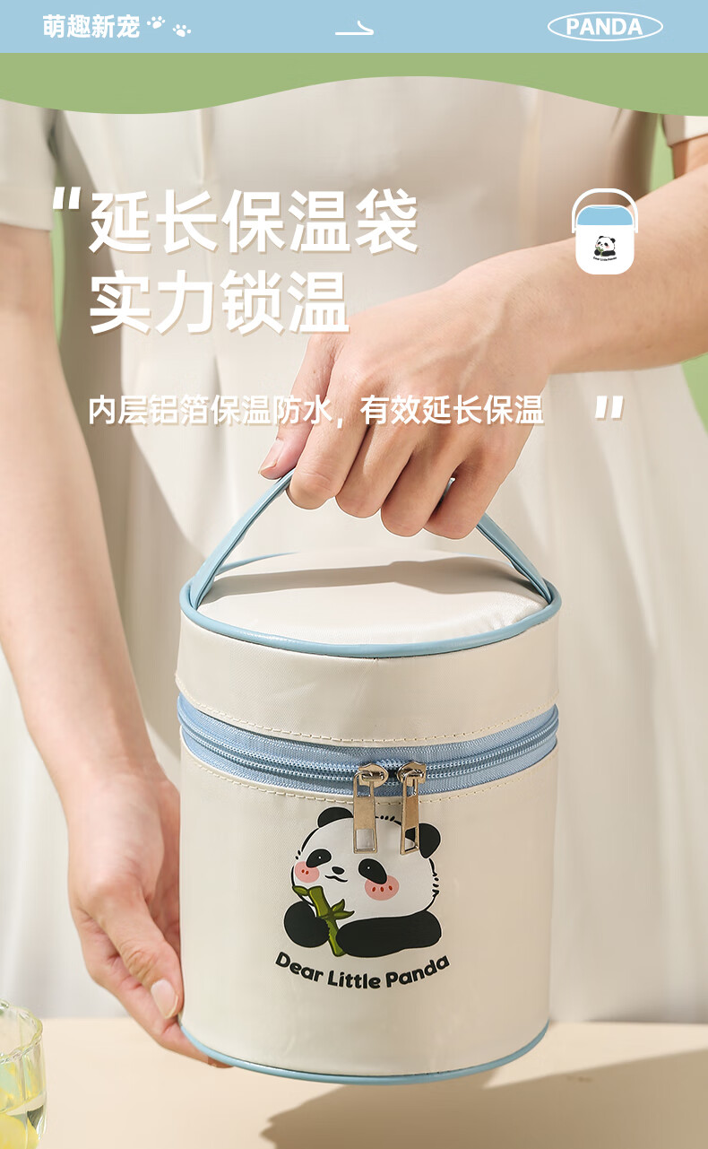 LEXIAOMAN 304 insulated lunch box for office workers, portable for students, extra long insulated bucket, stainless steel lunch box, multi-layered soup kettle, panda free folding spoon
