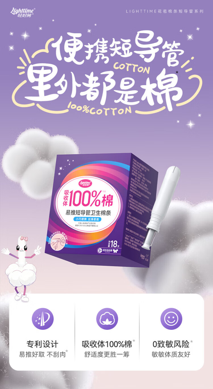Light time short catheter tampon large flow bud head menstrual sanitary napkin swimming built-in sanitary napkin aunt stick normal flow R code 36 pieces