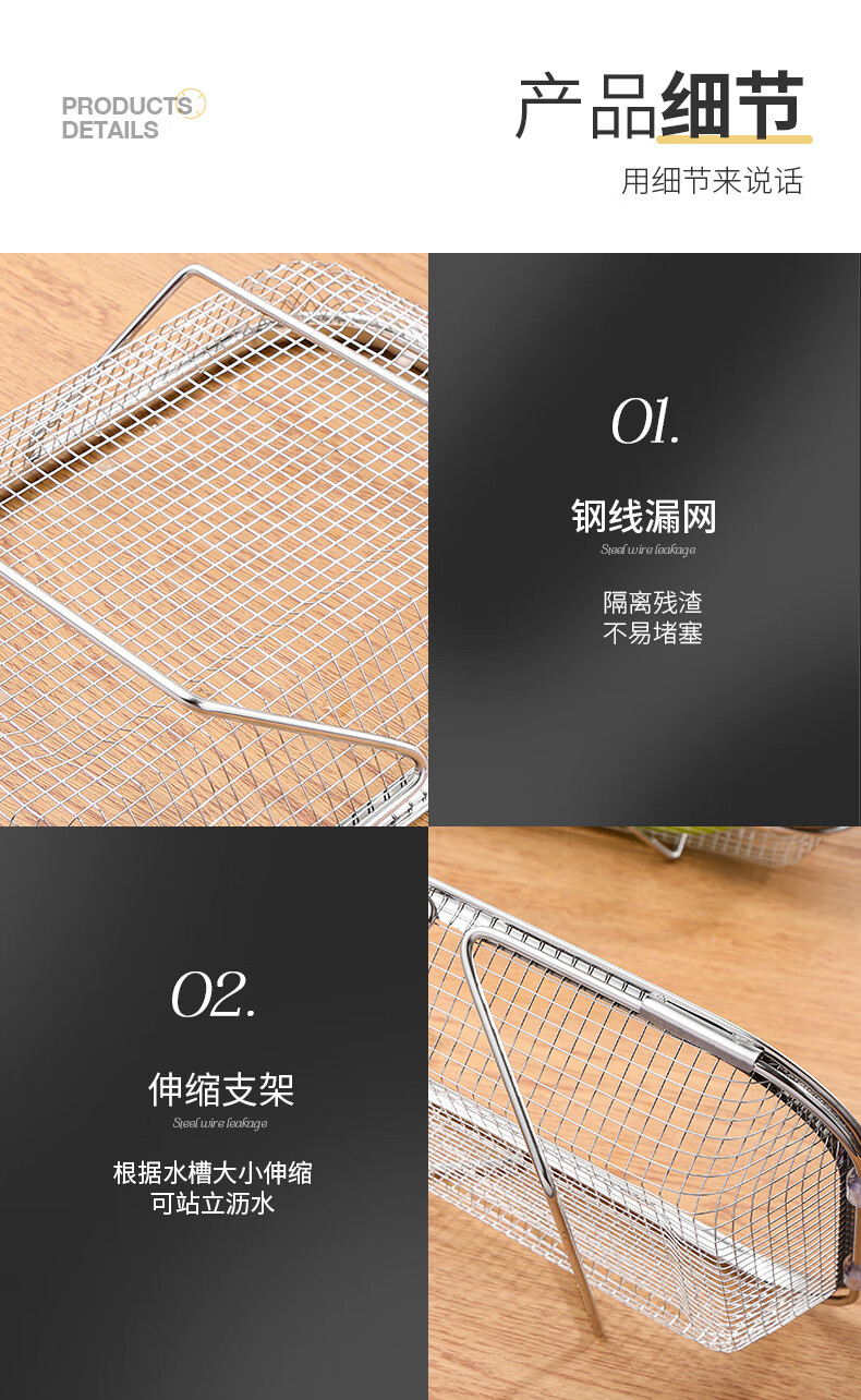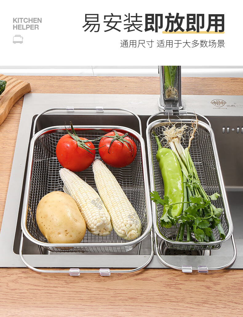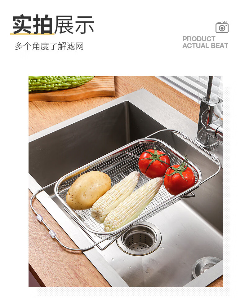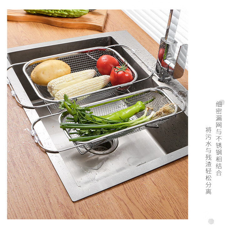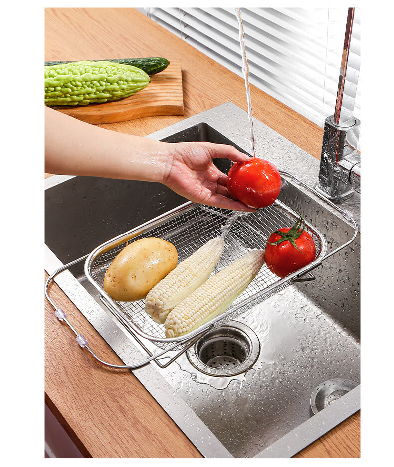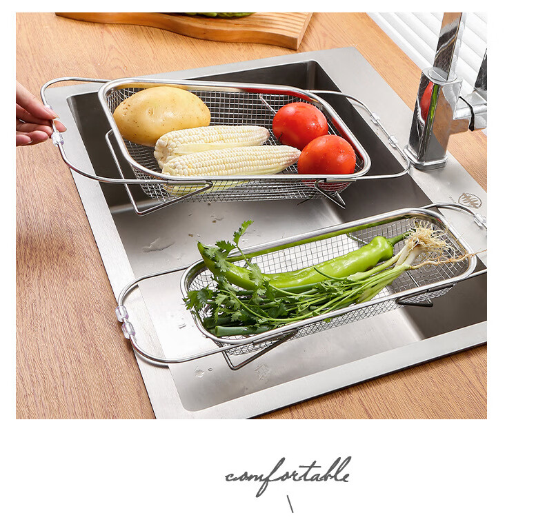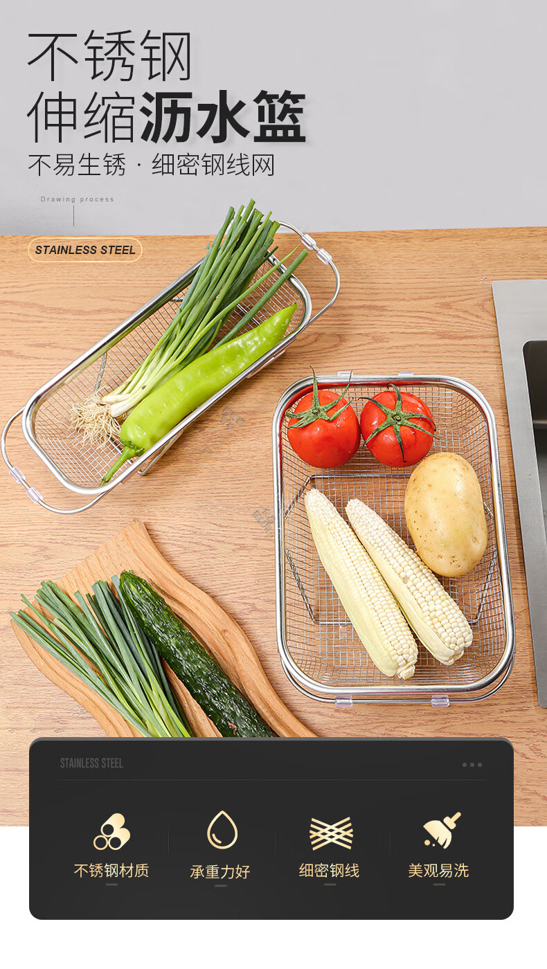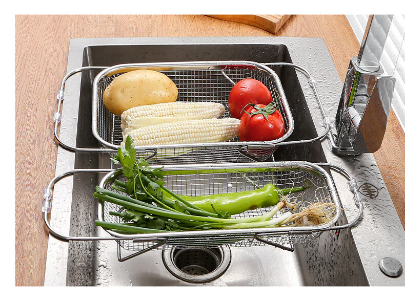 LEOEZYA stainless steel drain basket stainless steel retractable drain basket for bowl household vegetable basket fruit and vegetable basin drain basket kitchen small retractable_ stainless steel model