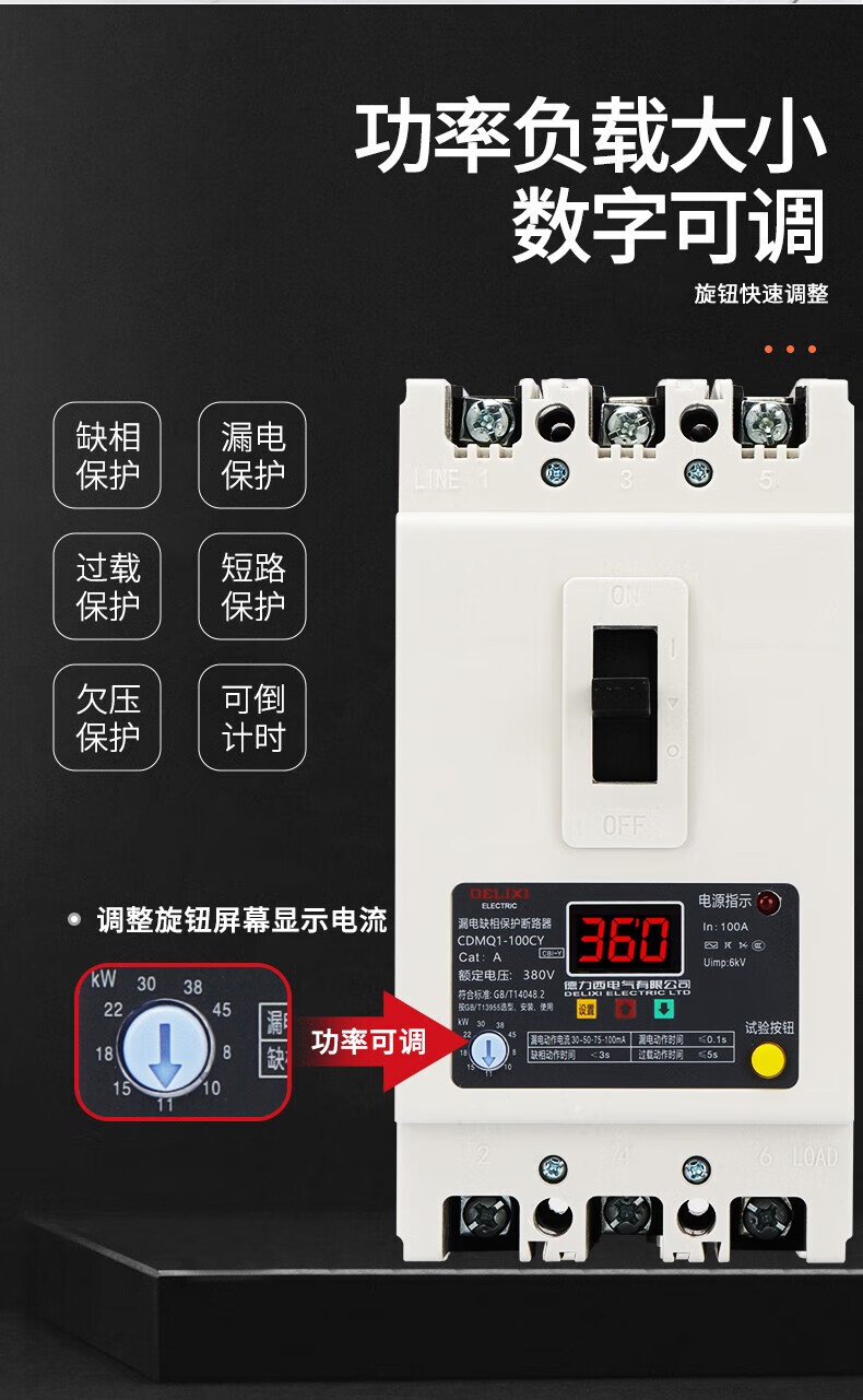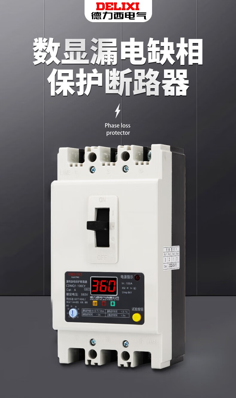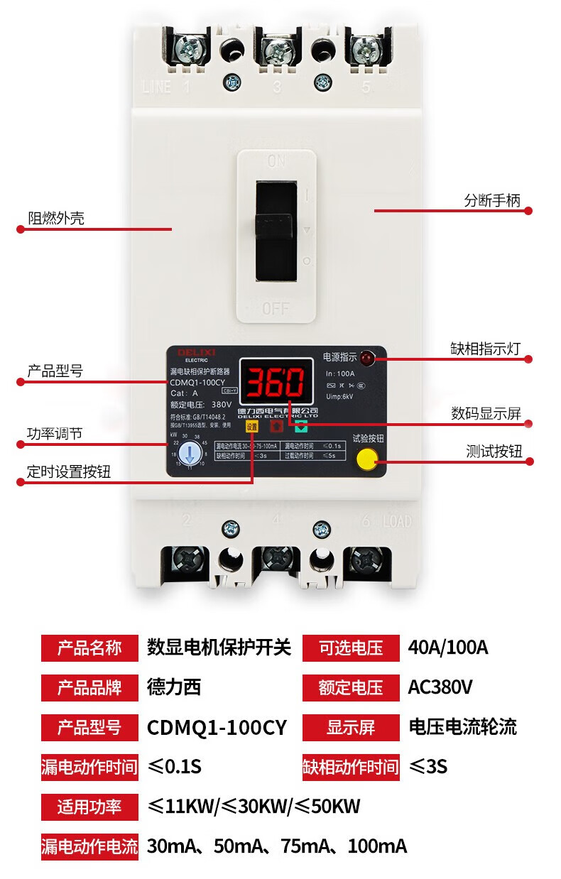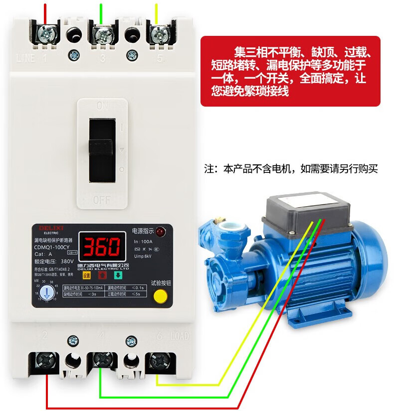 Delixi phase loss protector-100a motor water pump comprehensive protection overload short-circuit switch 380v three-phase 40A340A no leakage module