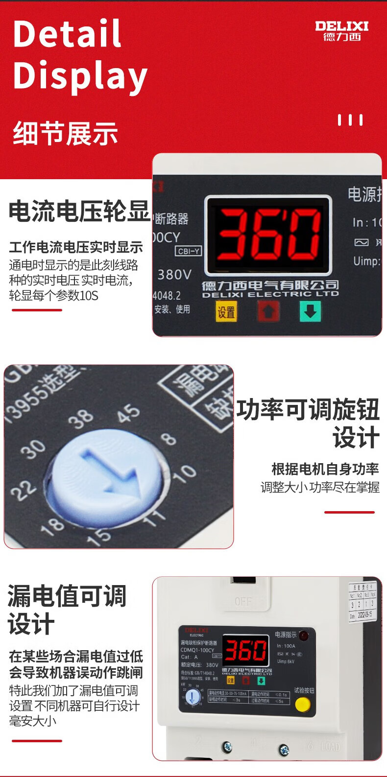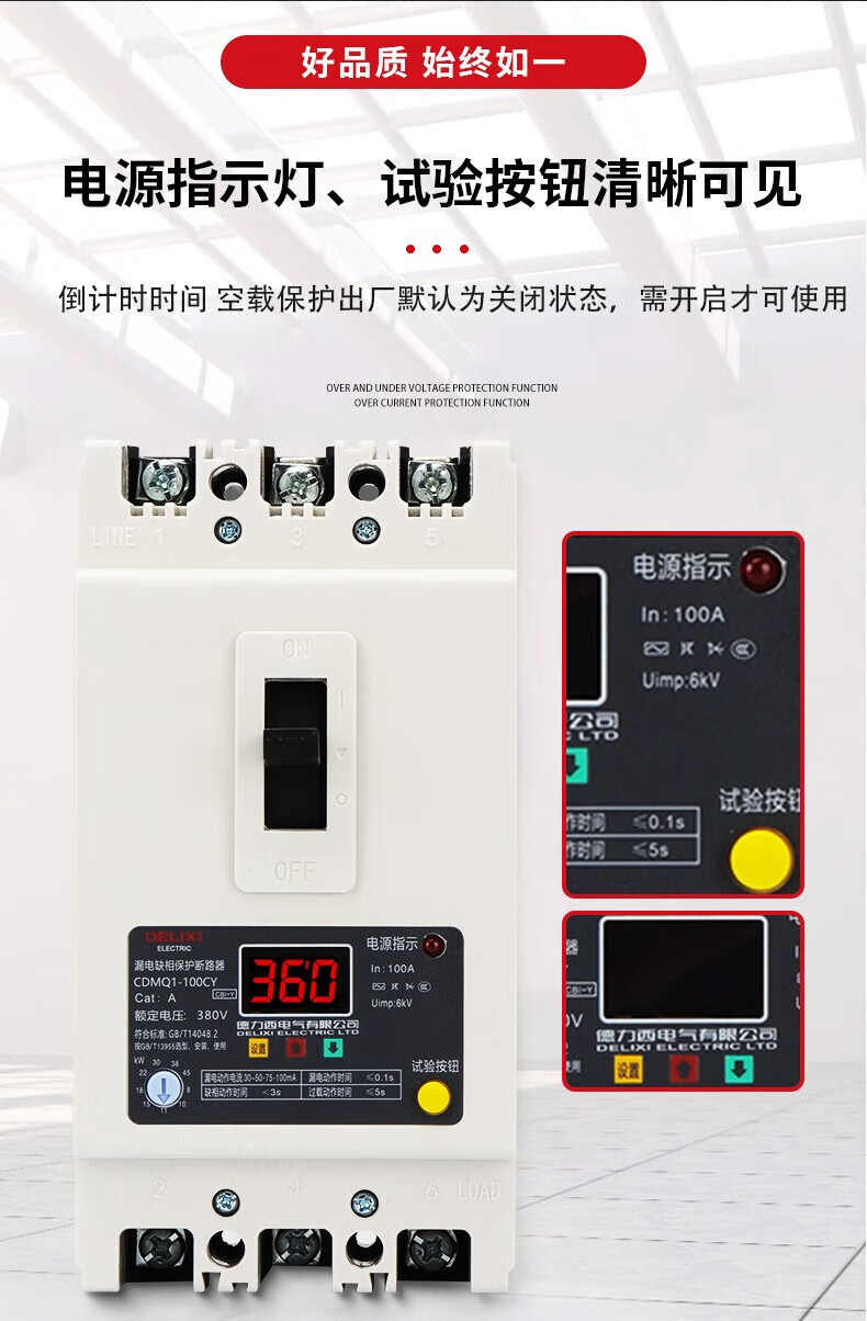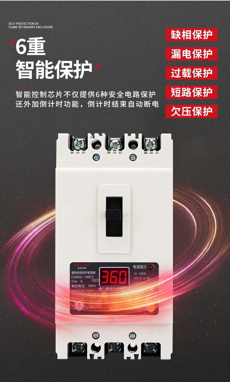 Delixi phase loss protector-100a motor water pump comprehensive protection overload short-circuit switch 380v three-phase 40A340A no leakage module